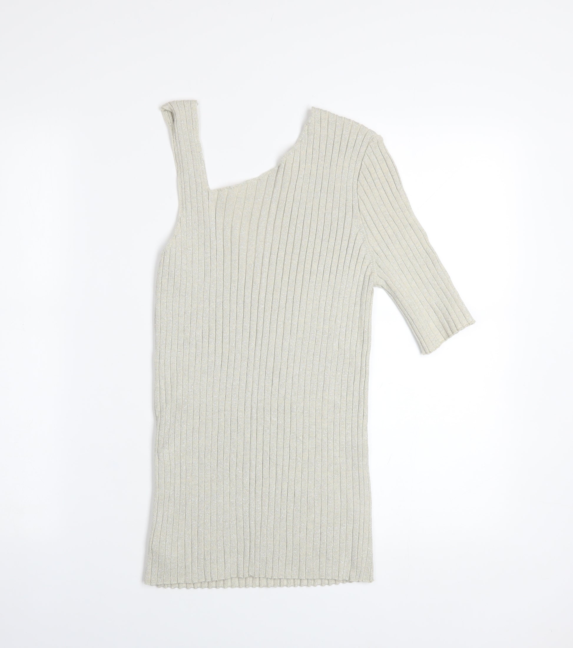 Next Women’s Beige Ribbed Asymmetric Knit Top Size 14