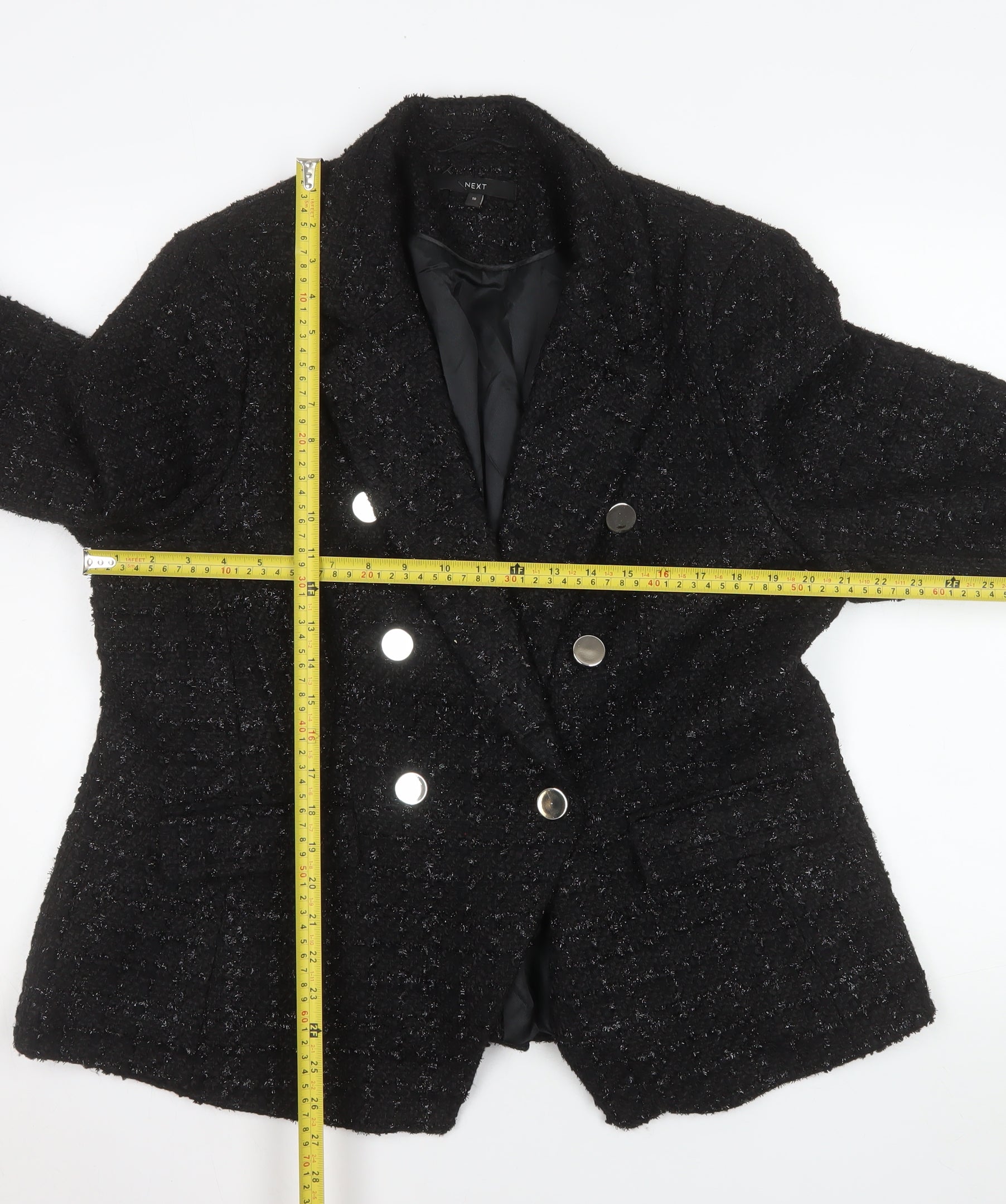Next Women’s Black Bouclé Double-Breasted Blazer UK 18