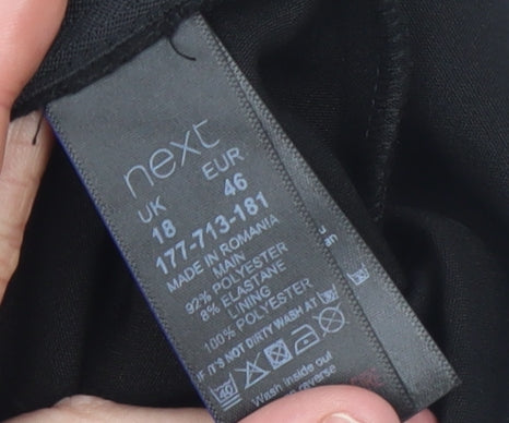 Step into timeless sophistication with this elegant black strapless jumpsuit from Next, designed for the modern woman who loves effortless style with a touch of glamour. Crafted from a luxurious blend of polyester and elastane, this sleek one-piece offers a beautifully contoured fit while providing just the right amount of stretch for all-day comfort. The soft woven fabric drapes gracefully and feels lightweight yet structured, making it ideal for evening occasions or refined daywear. The defining feature of this jumpsuit is its statement bow detail at the front, cinching the waist to flatter your figure and create a chic silhouette. The strapless neckline adds a sophisticated edge, perfect for showing off your shoulders or accessorising with statement jewellery. Its tapered leg design elongates the frame, offering a streamlined finish that looks stunning with heels or refined flats. The concealed zip closure ensures a smooth, secure fit and a polished appearance. With its elegant design and impeccable tailoring, this piece is perfect for cocktail parties, dinners, weddings or formal gatherings. The jumpsuit’s minimalistic appeal allows for versatile styling – keep it classic with subdued accessories or elevate it with bold heels and a clutch for an evening look. Made from high-quality materials (92% polyester, 8% elastane), it’s machine washable for easy care and practicality. This size 18 jumpsuit is fully lined, ensuring comfort and durability for repeated wears. The superb craftsmanship of Next ensures not only a flattering cut but also a durable and reliable wardrobe staple. Whether you’re dressing up for an event or simply looking for a sophisticated alternative to a dress, this Next black strapless bow detail jumpsuit delivers confidence, comfort, and timeless style in one sleek package. An essential piece for any modern wardrobe that values elegance and effortless chic.