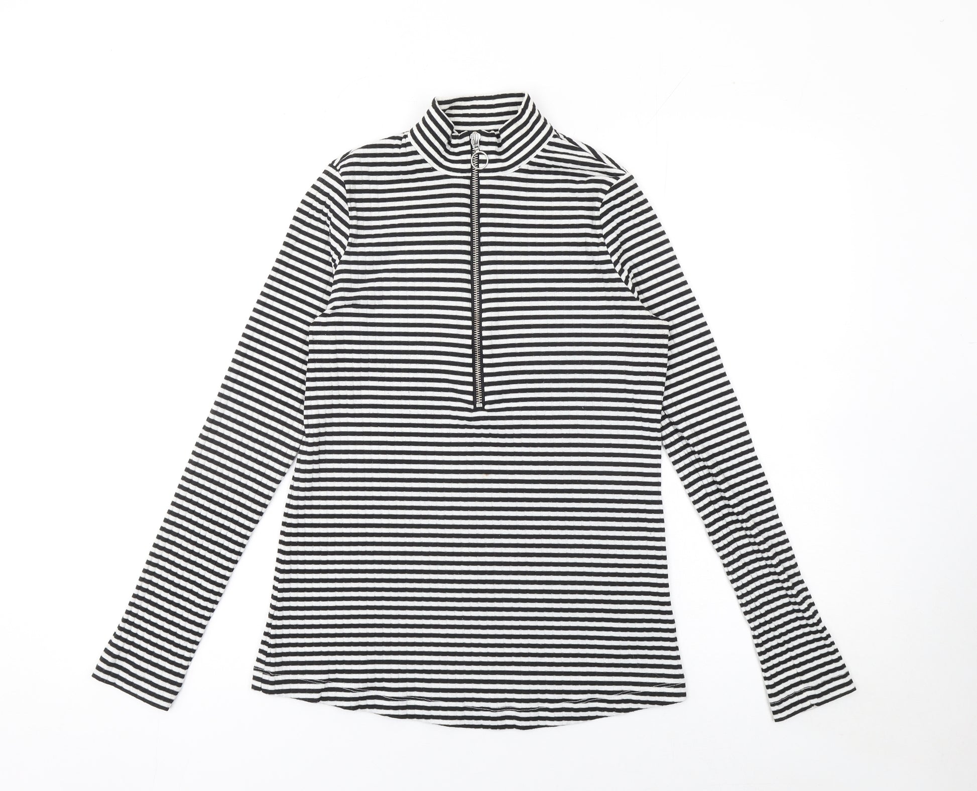 Next Women’s Black Striped Mock Neck Long Sleeve Zip Top Size 10