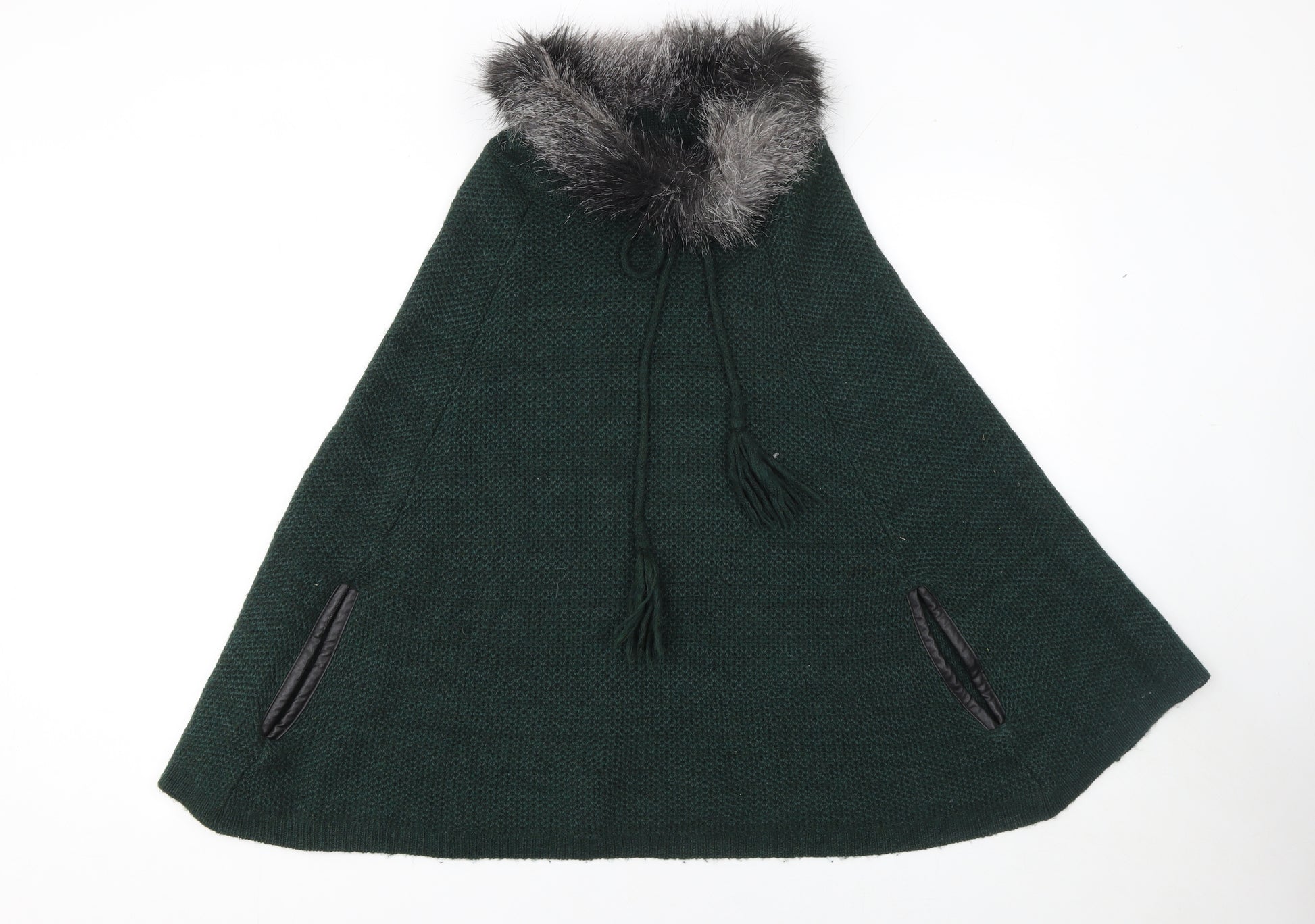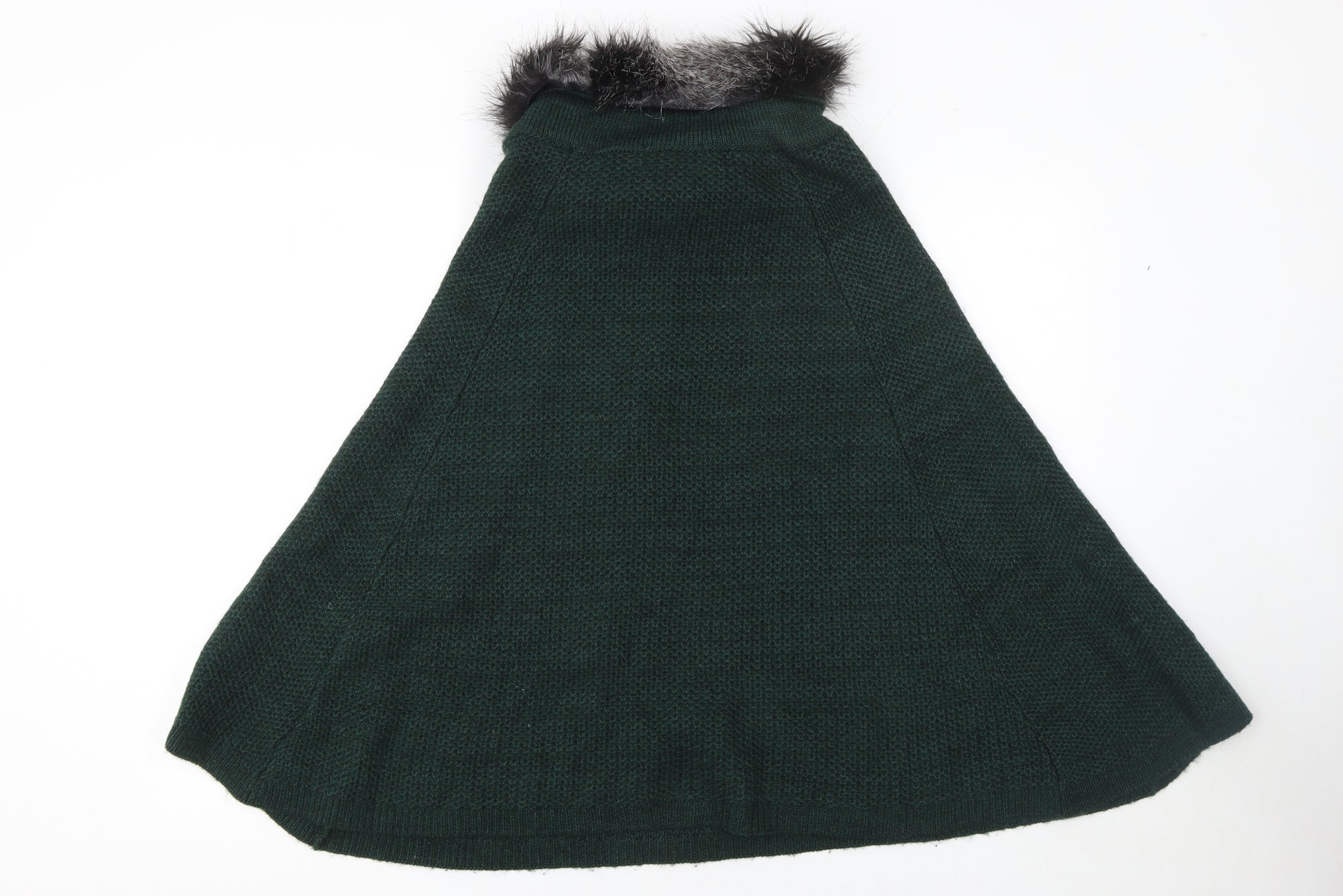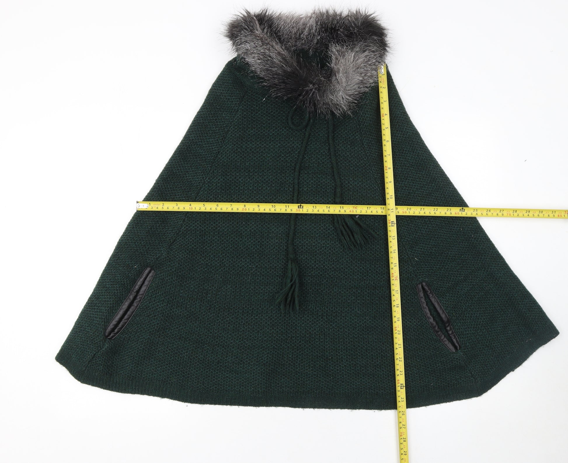Next Women’s Green Chunky-Knit Faux Fur Trim Cape Medium