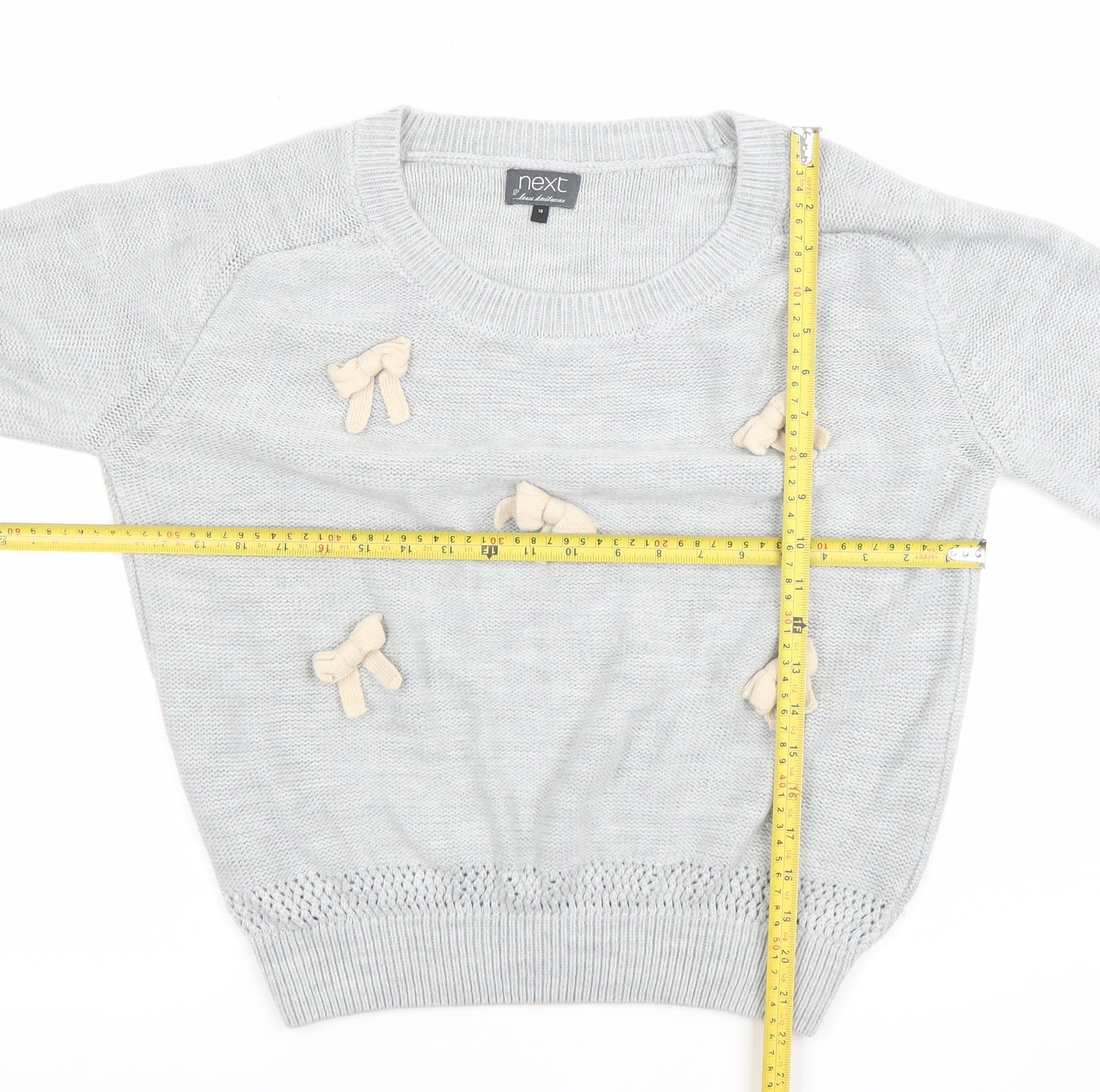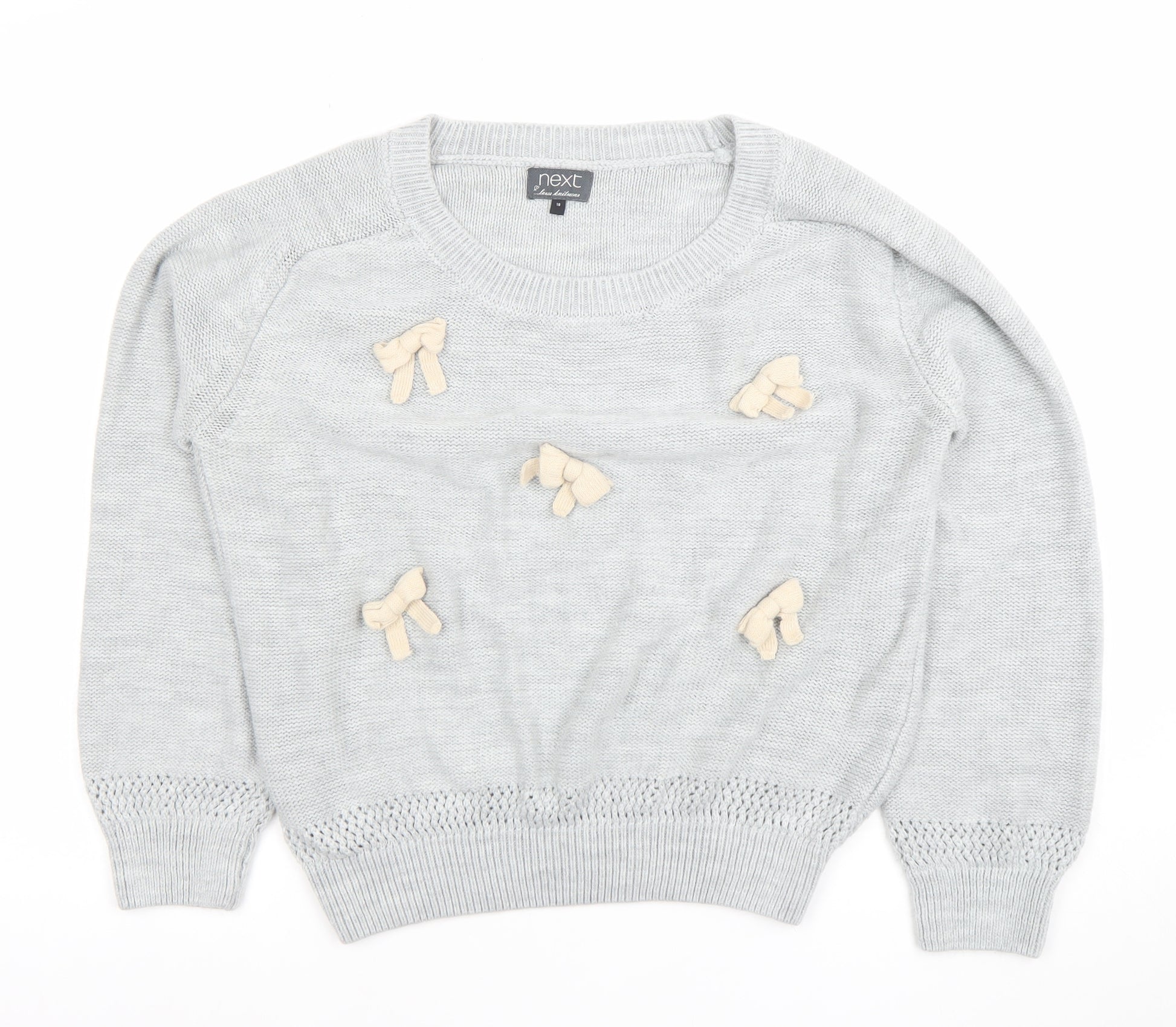 Next Women’s Grey Bow Knit Crew Neck Jumper Size 18