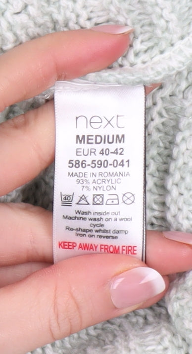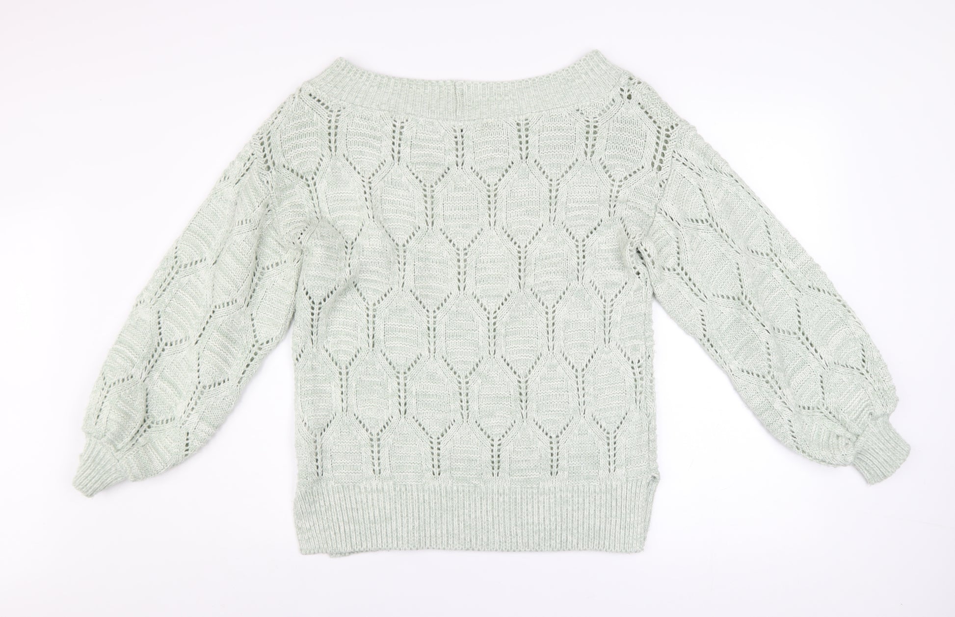 Add a soft, feminine touch to your wardrobe with this elegant women’s ivory jumper from Next. Crafted from a cosy blend of 93% acrylic and 7% nylon, this beautifully textured open-knit pullover is both breathable and lightweight, making it perfect for layering through autumn, winter, and spring. Designed in a relaxed fit, it offers all-day comfort while maintaining a flattering silhouette. The chic boat neckline and balloon sleeves introduce a modern sense of style, complementing the geometric knit pattern that gives the piece its unique charm. Ribbed cuffs and hem provide a neat finish and help hold its shape for a polished look every time you wear it. Ideal for casual days out, cosy evenings in, or relaxed workwear, this jumper pairs effortlessly with jeans, trousers, or a skirt. The soft ivory shade is versatile and timeless, easily integrating into any wardrobe palette. Machine washable and easy to care for, it’s a practical choice for everyday wear. This garment is in excellent pre-loved condition with no visible signs of wear or damage, ensuring great value while remaining stylish and comfortable. A delightful addition for those who appreciate comfort blended with contemporary knit design, this jumper will become a go-to piece for effortless, refined dressing. Refresh your cold-weather collection with this airy yet warm open-knit jumper — ideal for layering, lounging, or stepping out in softly understated style.
