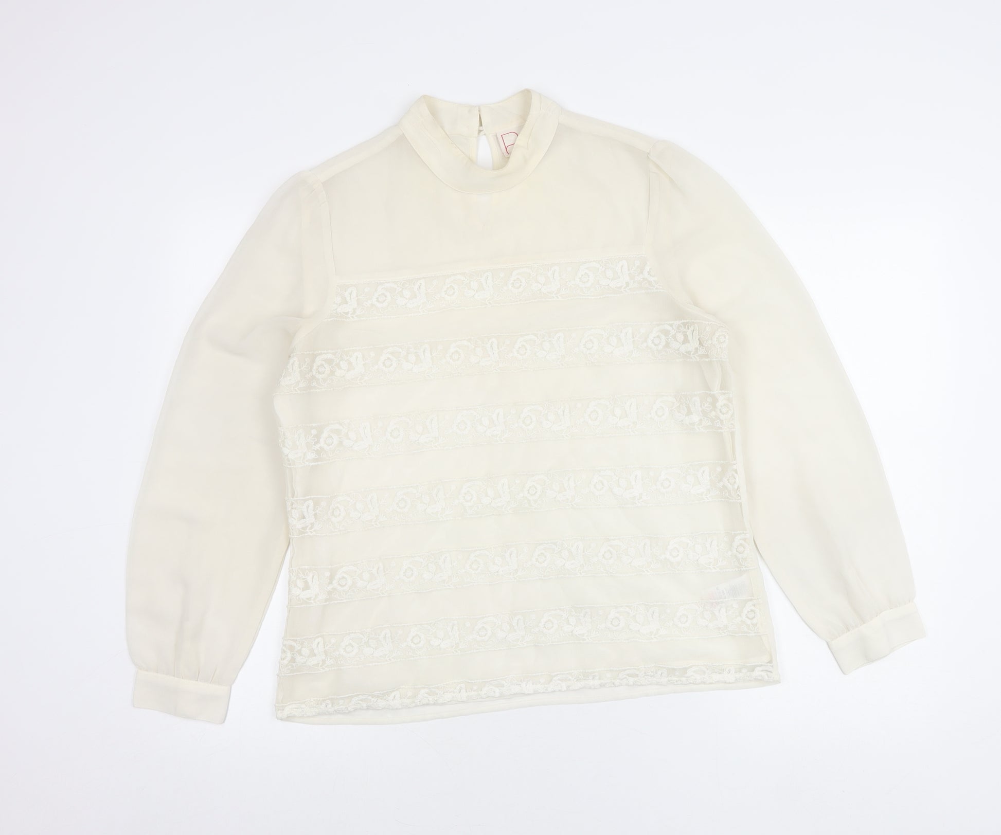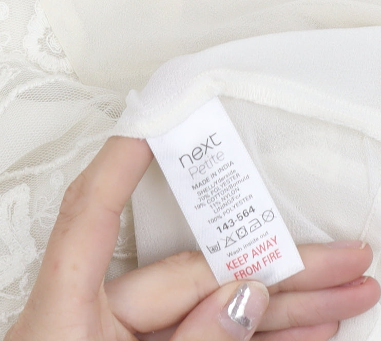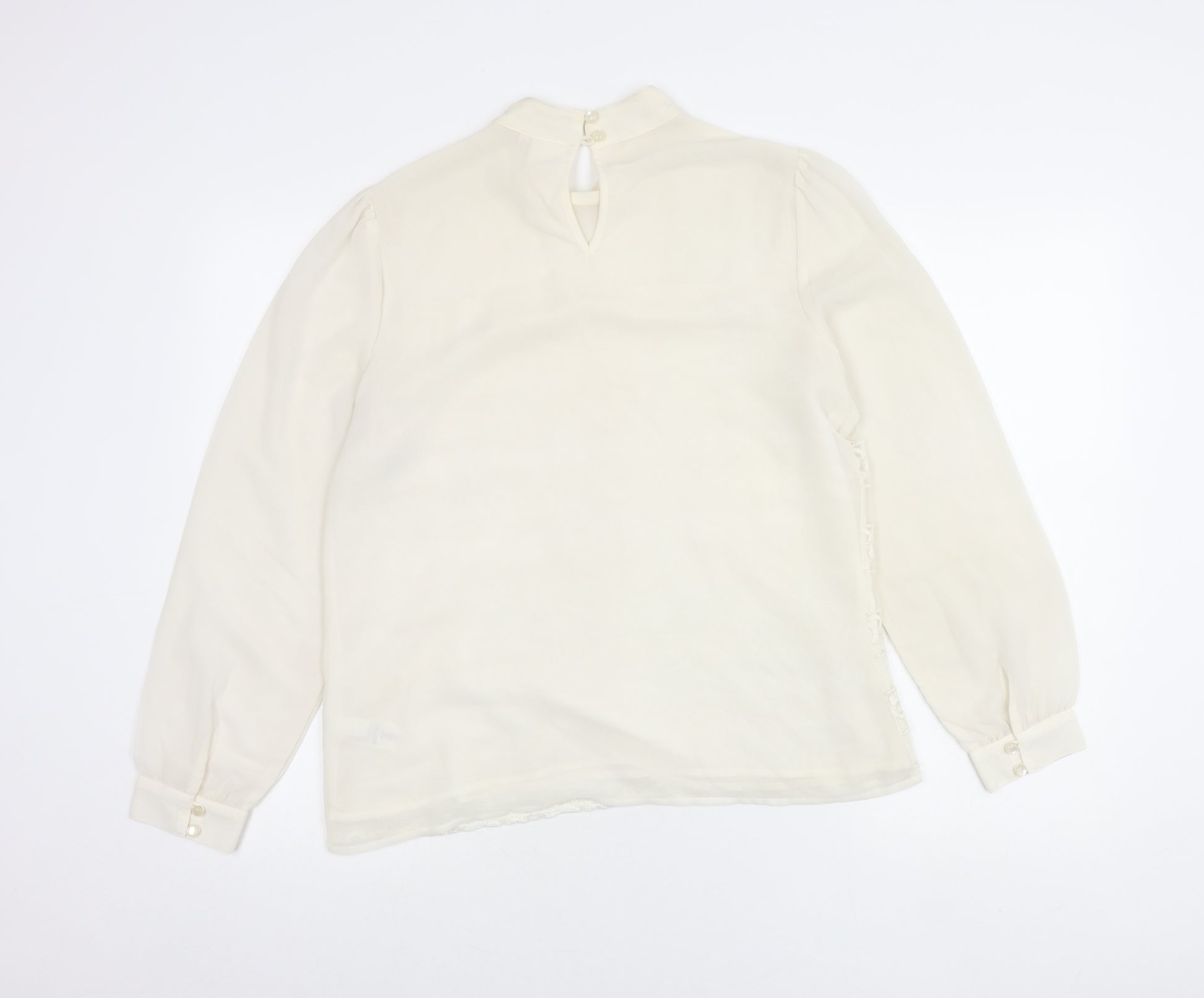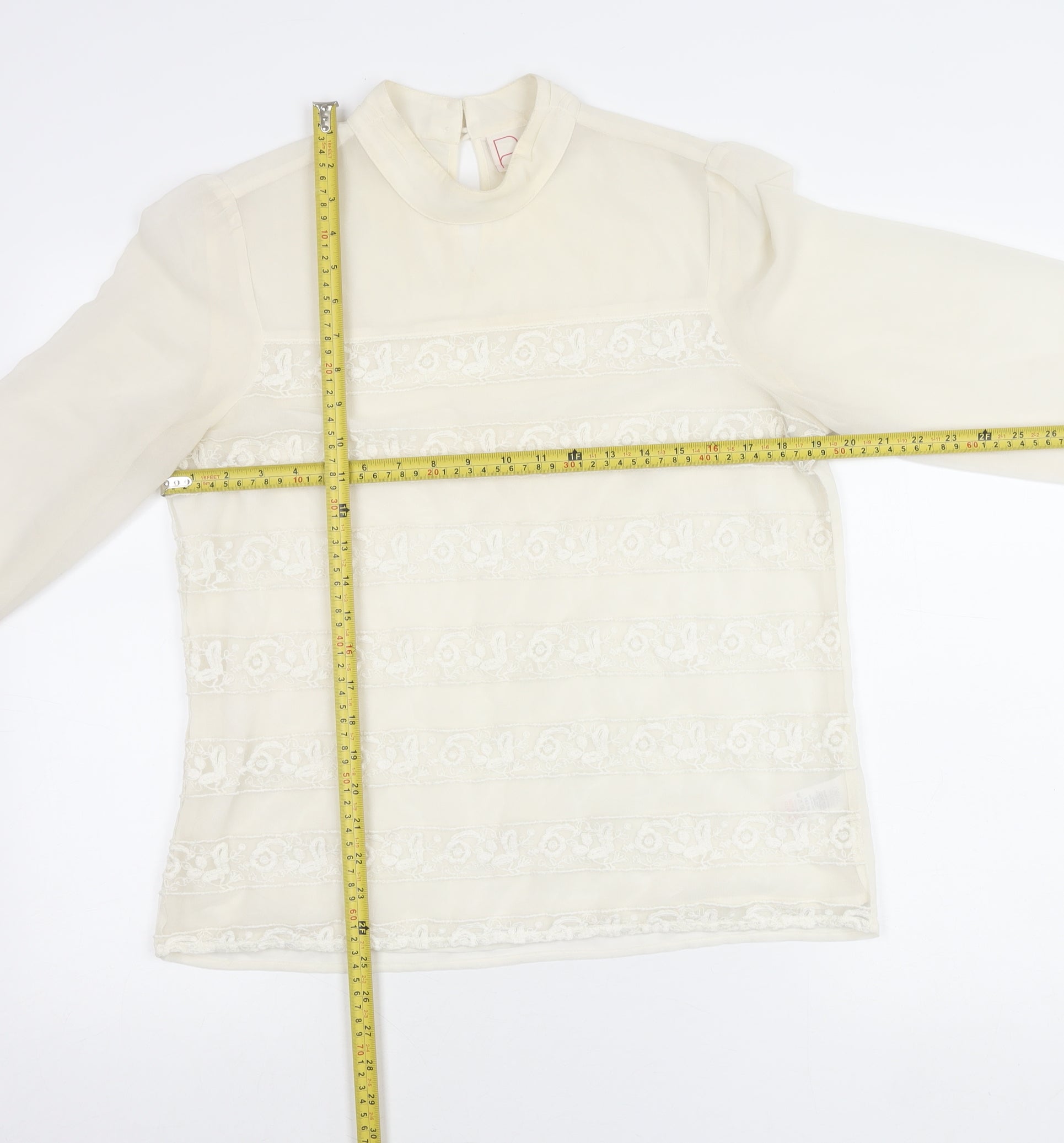 Next Women’s Ivory Petite Blouse Size 14 Mock Neck Lace Detail