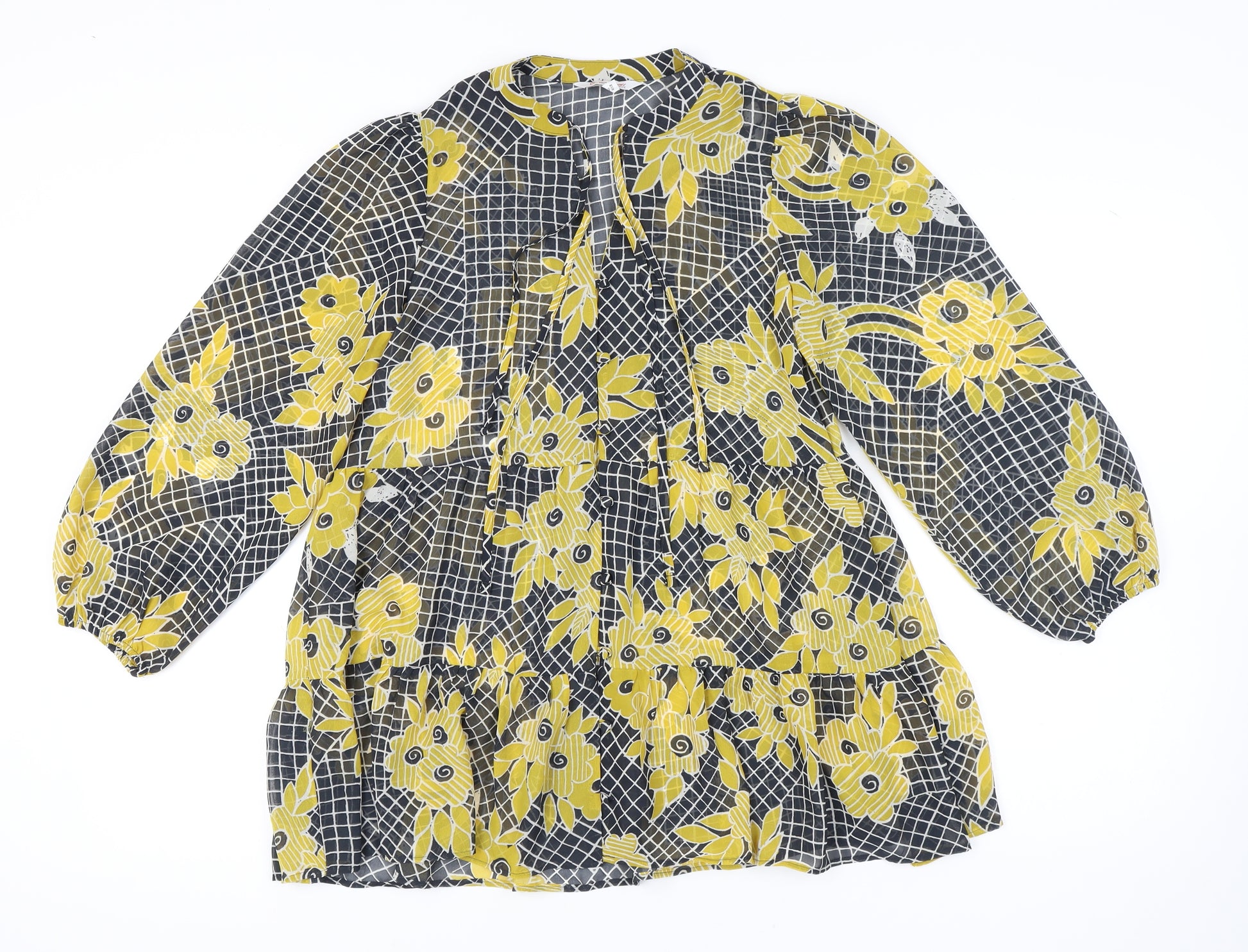 River Island Women’s Multicoloured Floral Puff Sleeve Tunic Blouse Size 10