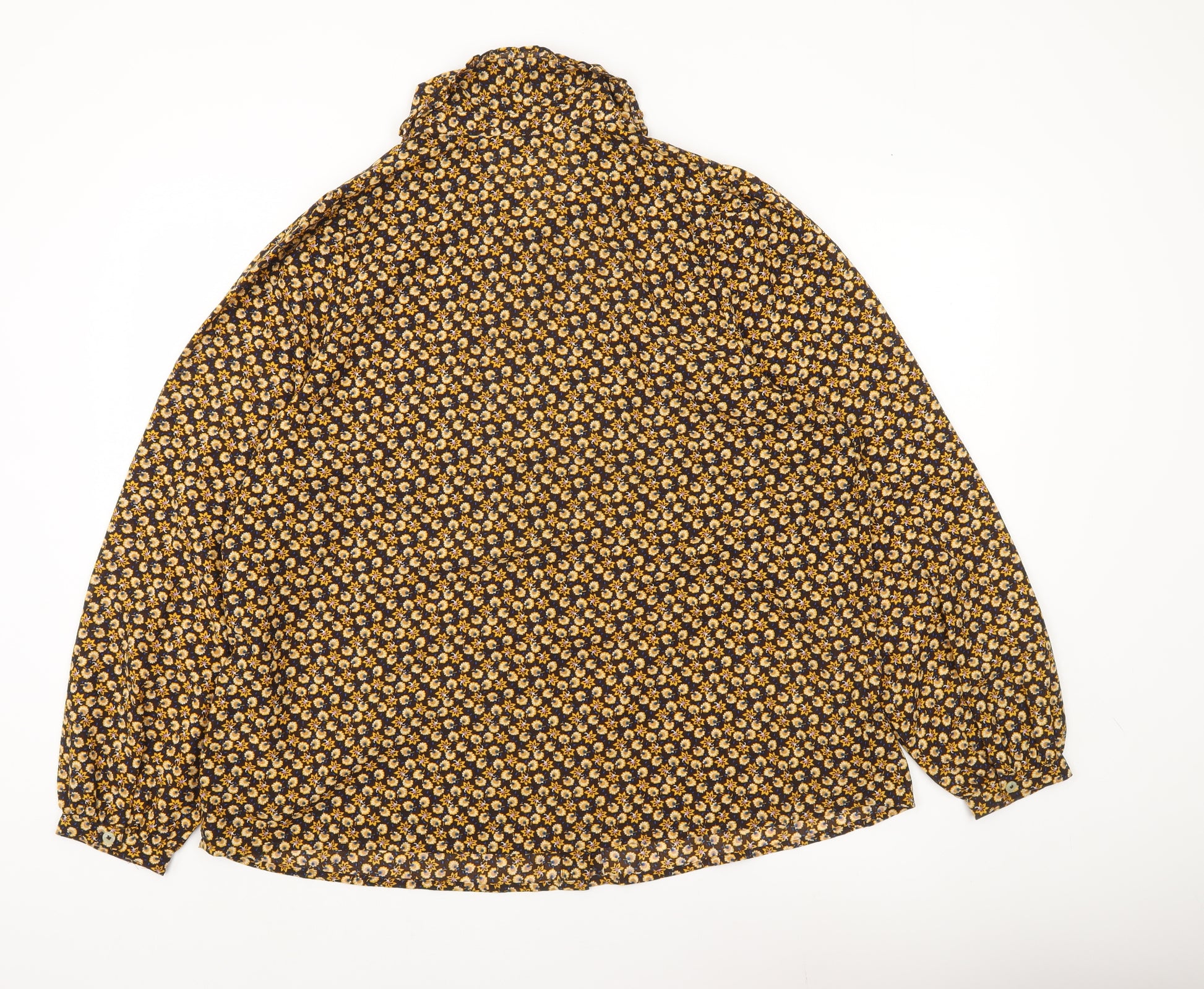 This lovely women’s blouse from Next is a stylish addition to your wardrobe, blending comfort with an elegant floral design. Crafted from 100% polyester, this lightweight and breathable blouse is perfect for year-round styling, particularly in the warmer months of spring and summer, but can also be easily layered in autumn. The woven material provides durability while maintaining a flowy, easy-to-wear silhouette that flatters a range of body shapes. Sized UK 20, this blouse offers a regular fit, making it a versatile piece for casual occasions or smart workwear outfits. It features a classic collared neckline paired with a full button-up design that adds both functionality and polish to the look. The long sleeves with fitted cuffs provide a timeless cut, perfect for a laid-back yet refined appearance. Subtle button accents down the front lend an additional element of charm, while the eye-catching floral pattern in shades of golden yellow, cream, and soft hues contrasts beautifully against the dark background for a standout finish. Practical and easy to care for, this blouse has machine washable, easy-care fabric, making it a convenient wardrobe staple. It also carries the benefit of being lightweight, ensuring comfort throughout the day whether worn for work, casual styling, or smart-casual events. The versatile colour palette makes it easy to pair with trousers, jeans, or skirts, making it a go-to styling piece for multiple outfits. The condition of this blouse is excellent, showing only light previous wear with no noticeable flaws. Whether you’re refreshing your workwear rotation or searching for an everyday blouse that combines practicality and chic design, this piece delivers on all fronts. Add this Next floral button-up blouse to your collection for a timeless staple that’s as effortless as it is stylish.