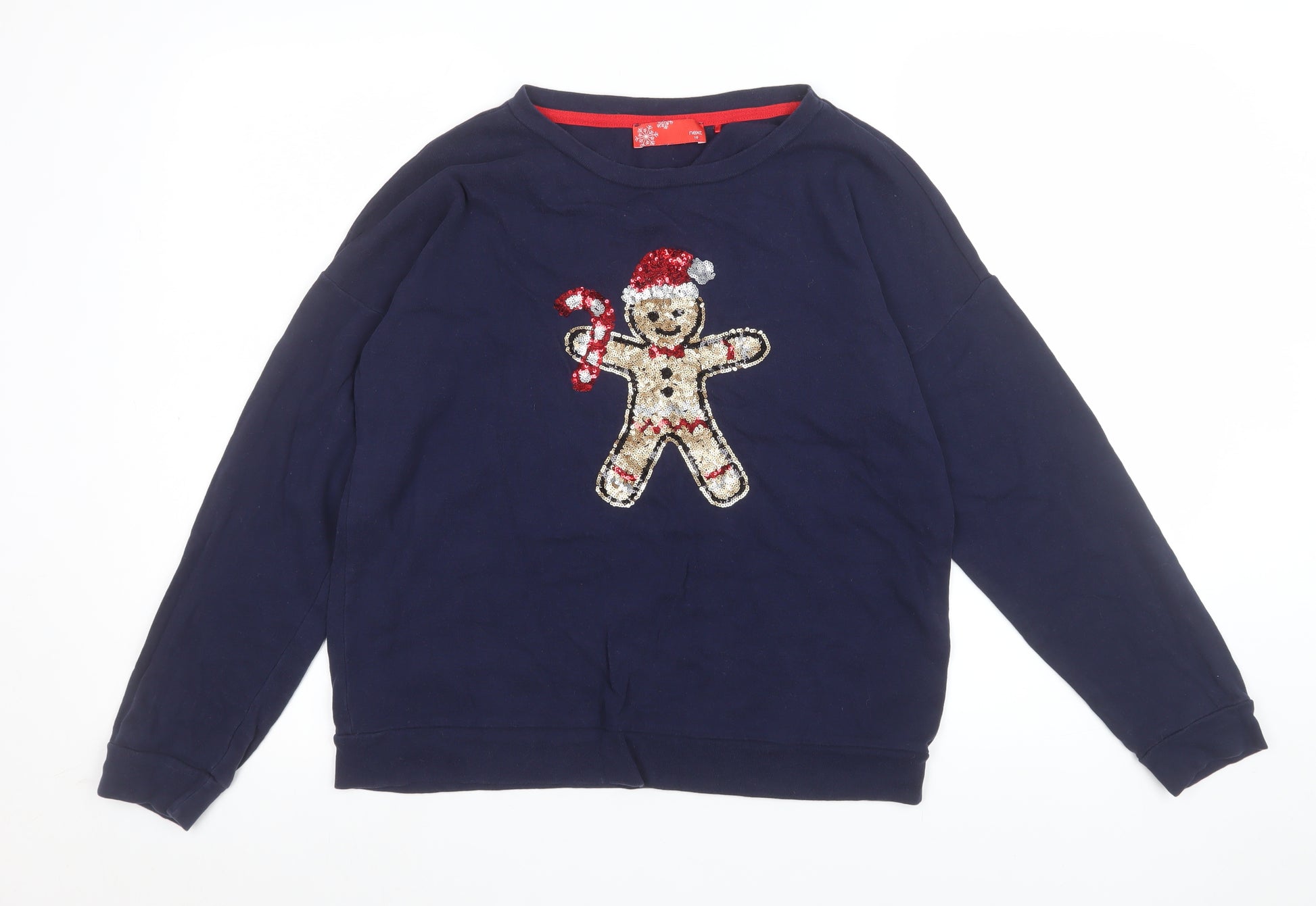 Next Women’s Navy Christmas Sequin Gingerbread Sweatshirt UK 10