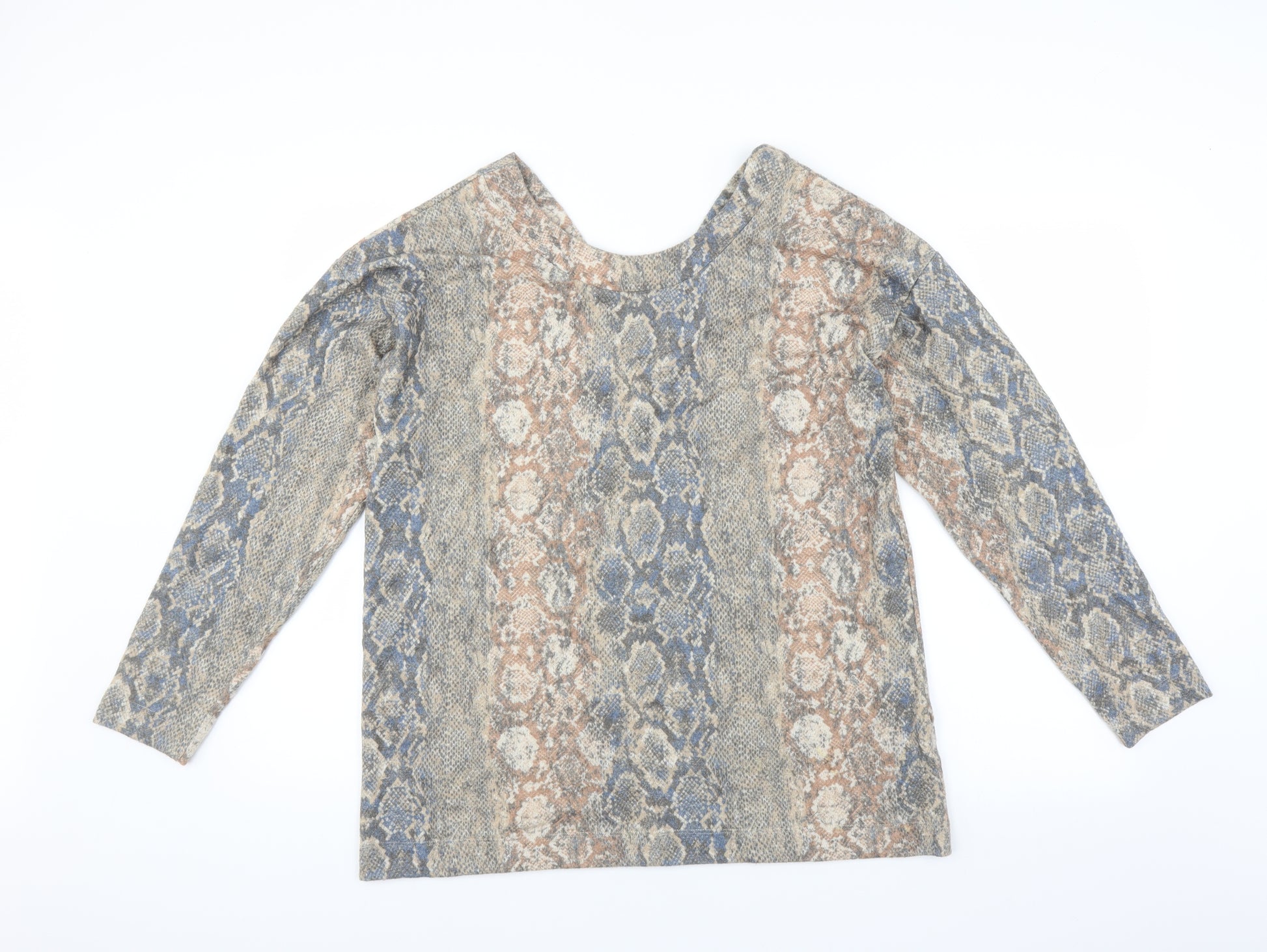 Next Womens Beige Leopard Print Crew Neck Jumper Size 16