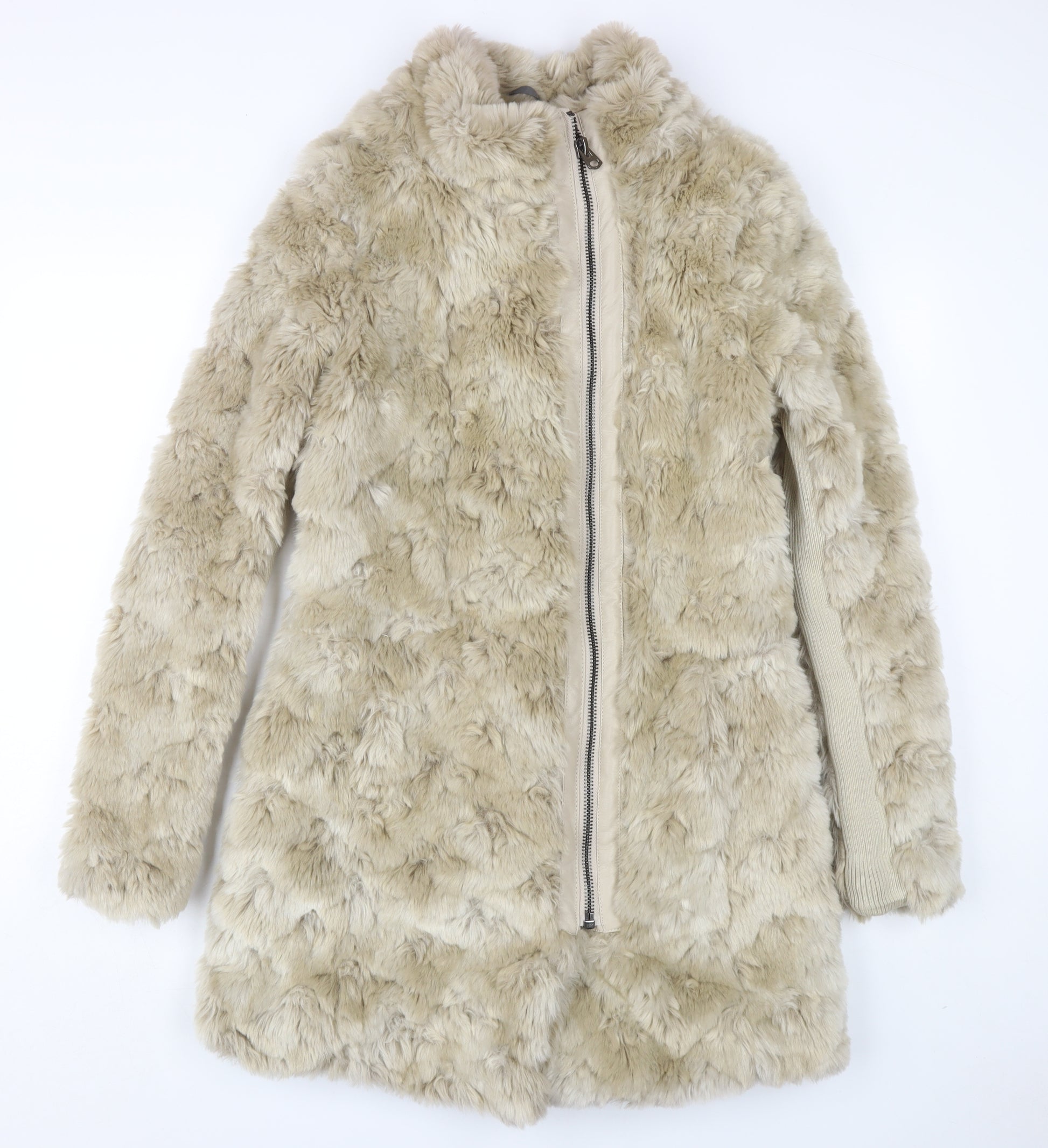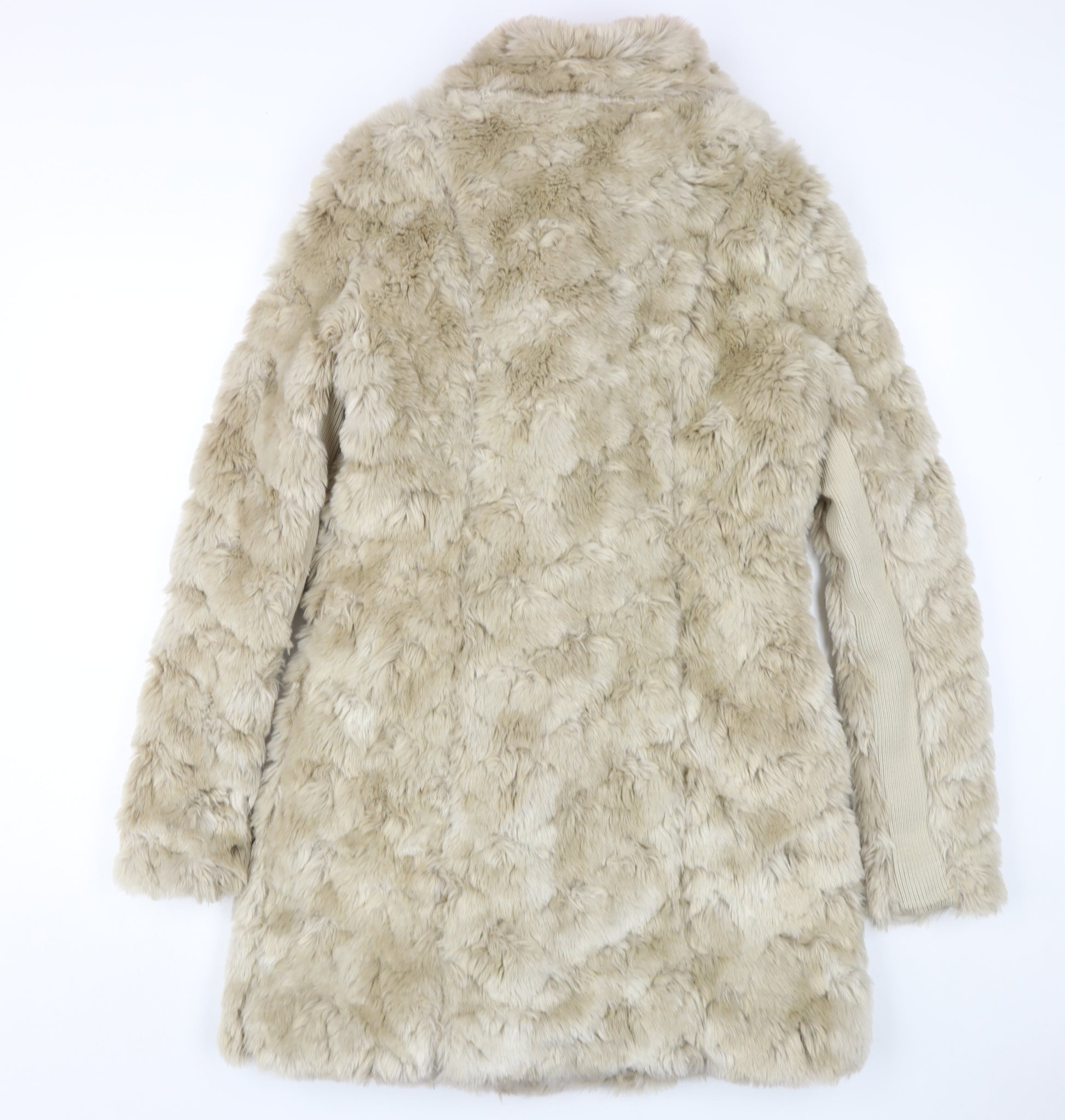 Next Women's Beige Faux Fur Coat Size 10 Mid-Length