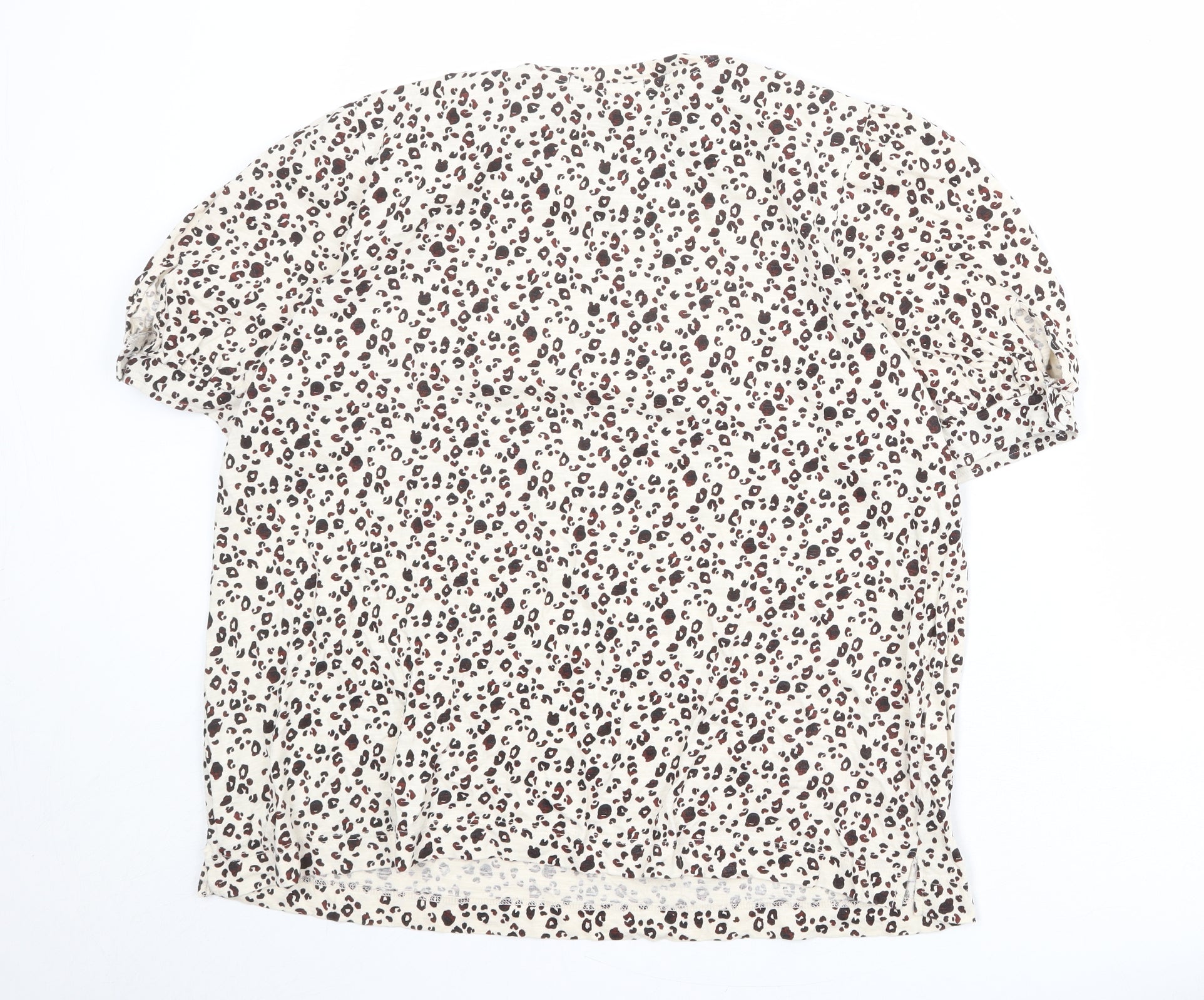 Womens Beige Geometric 100% Cotton Basic Blouse Size 20 Round Neck