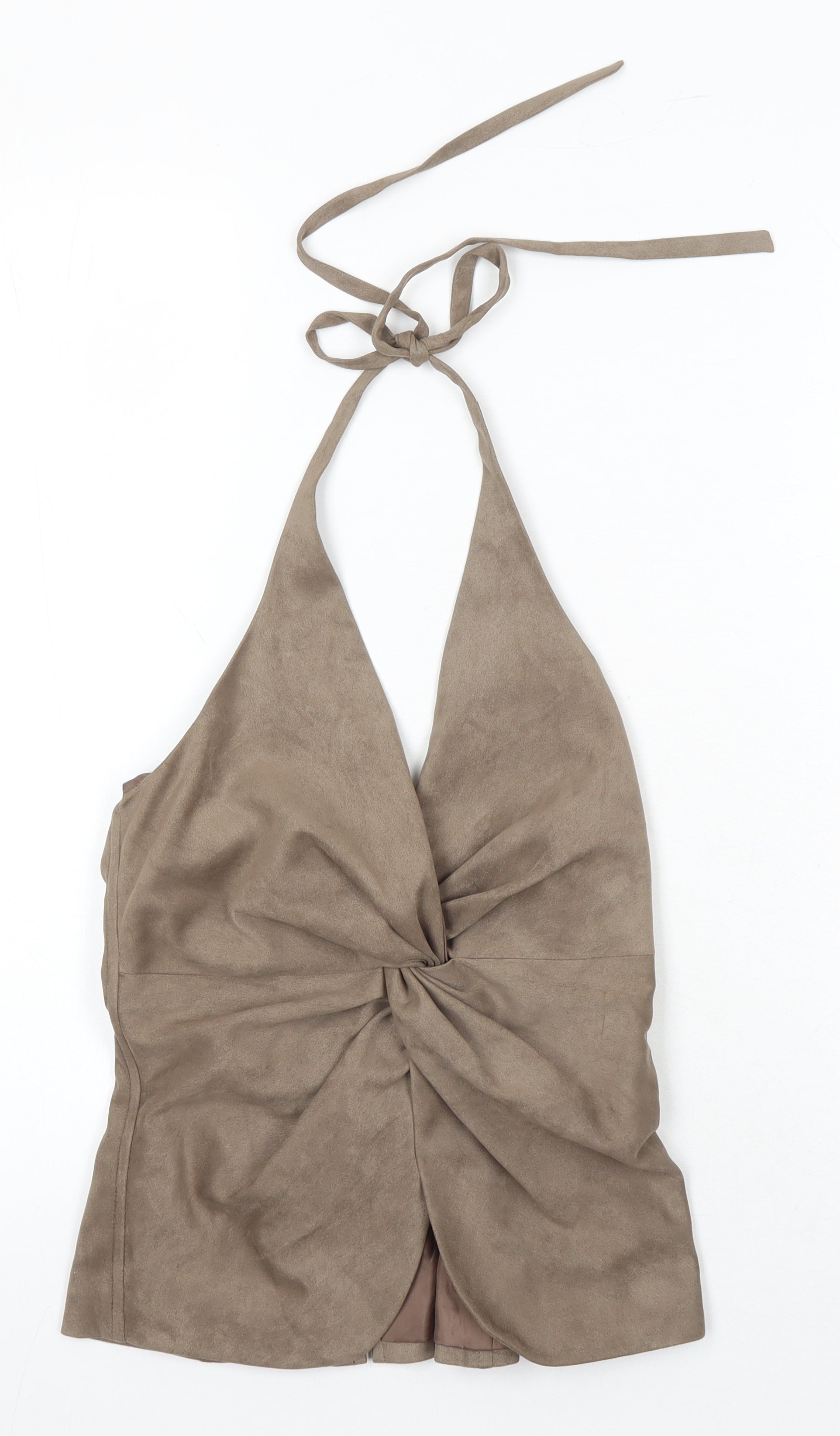 Womens Beige Herringbone Polyester Cropped Blouse Size 6 Halter