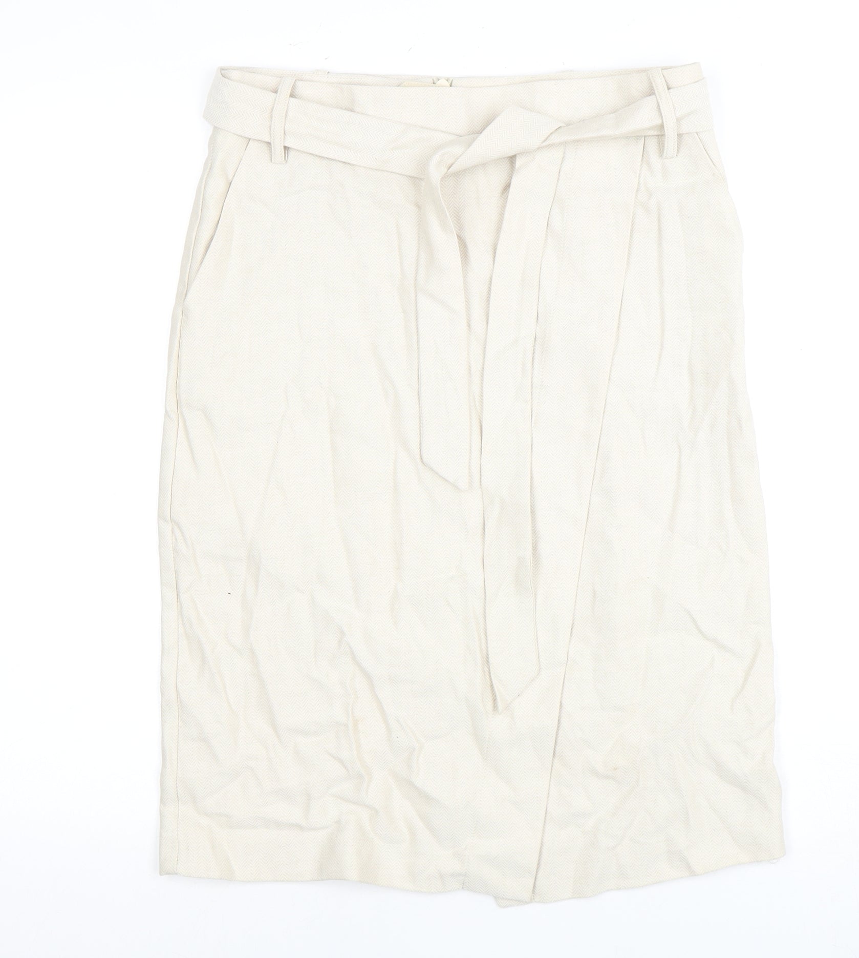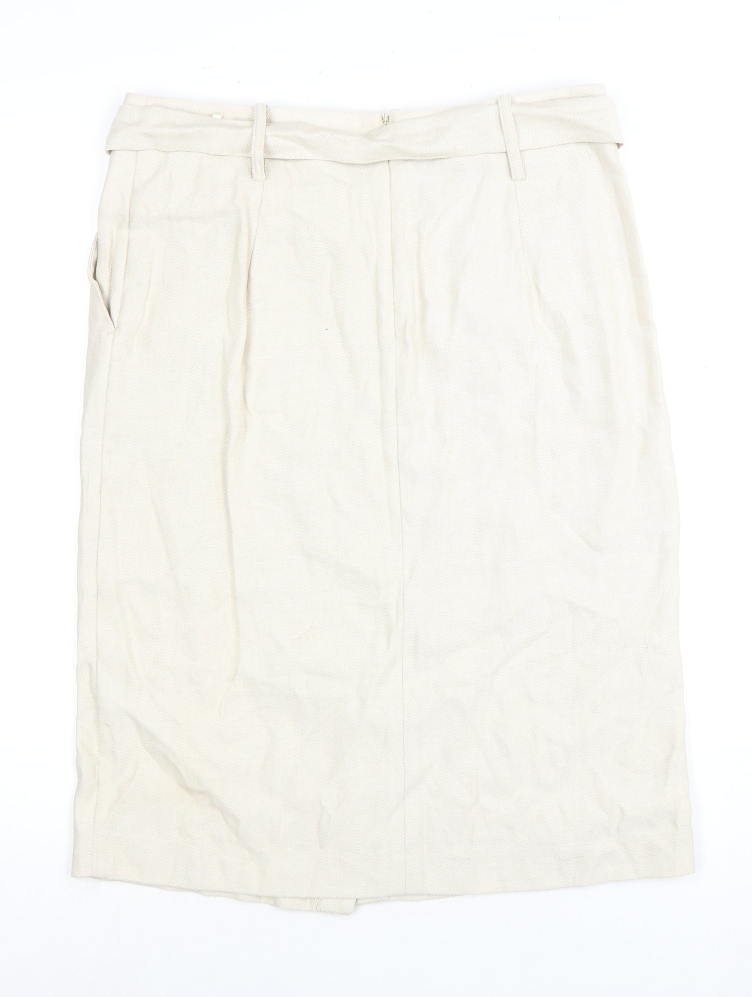 Next Women's Beige Pencil Skirt Size 10 Cotton Linen