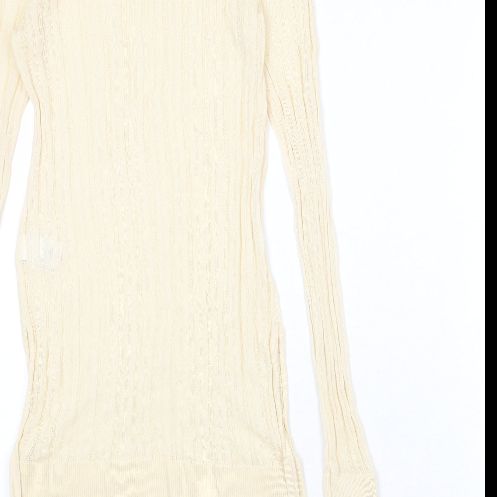 Womens Beige Round Neck Viscose Pullover Jumper Size 6