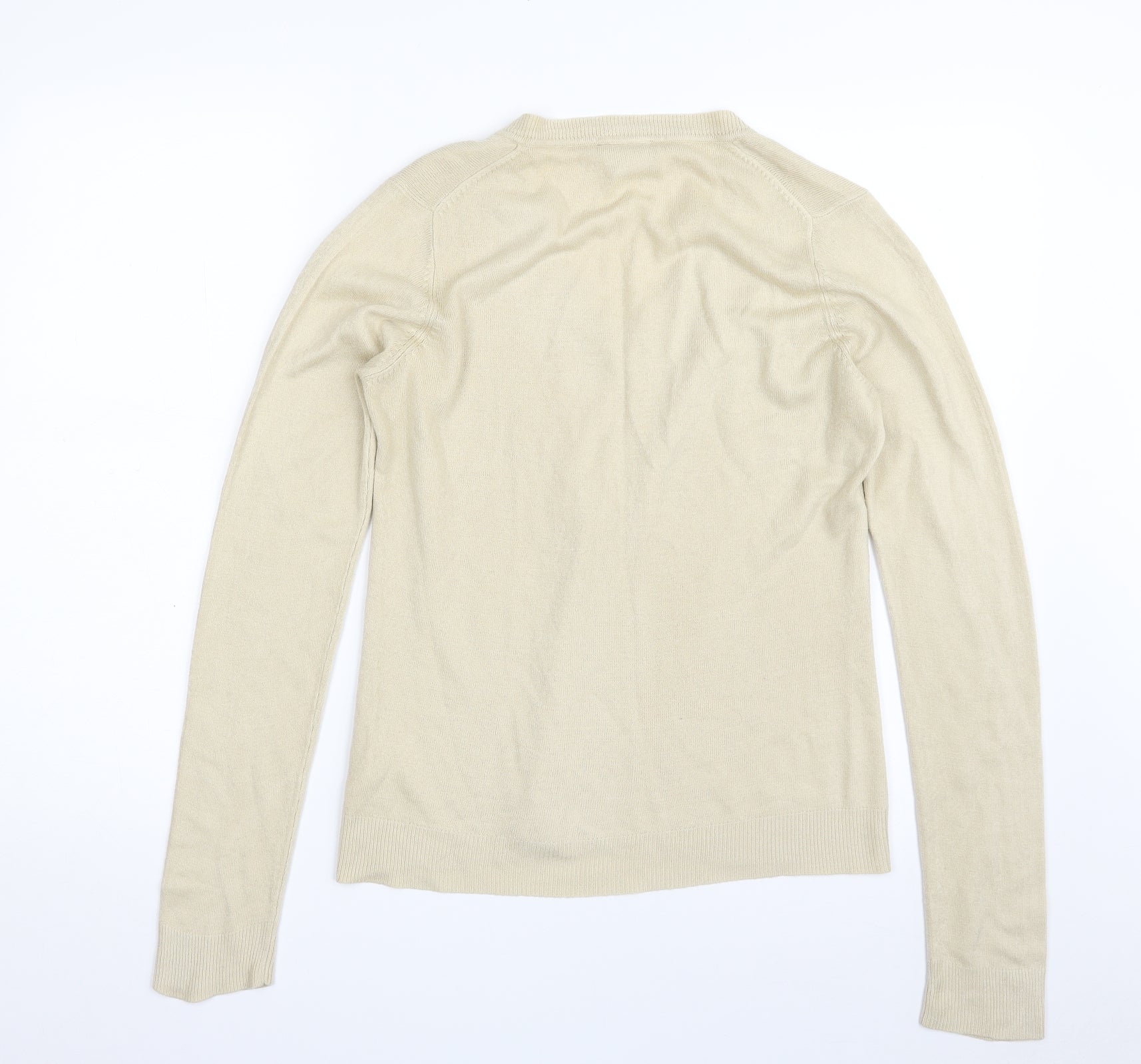Womens Beige V-Neck Acrylic Pullover Jumper Size 12