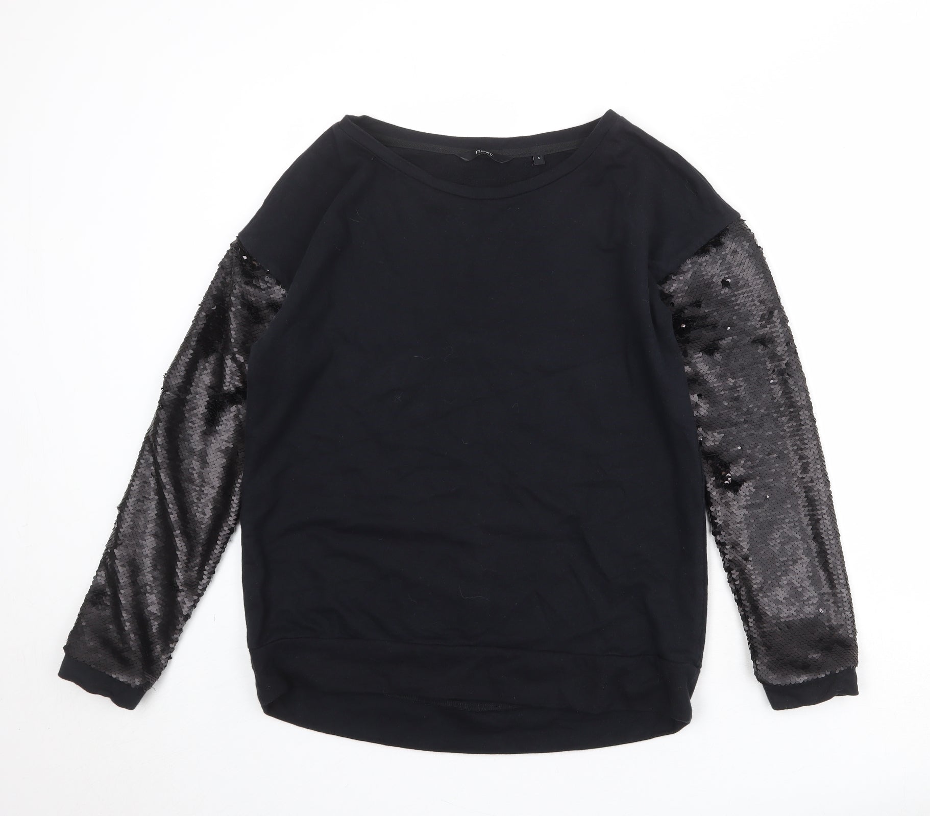 Womens Black 100% Cotton Pullover Sweatshirt Size S Pullover - Sequin Sleeve