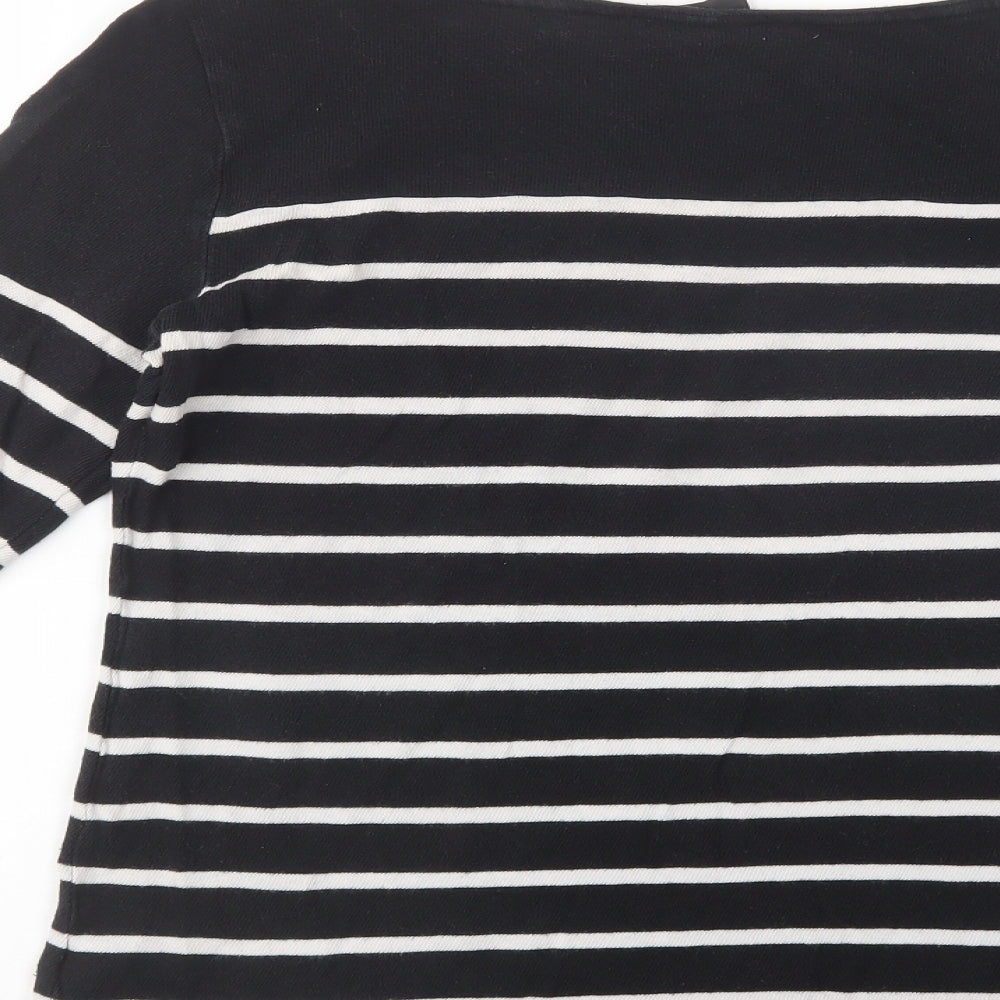 Womens Black Boat Neck Striped Cotton Pullover Jumper Size 12