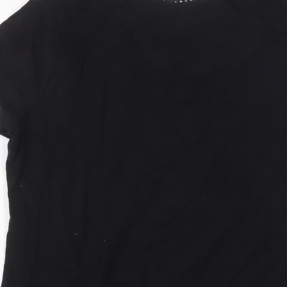Womens Black Cotton Basic T-Shirt Size 14 Crew Neck - Embroidered