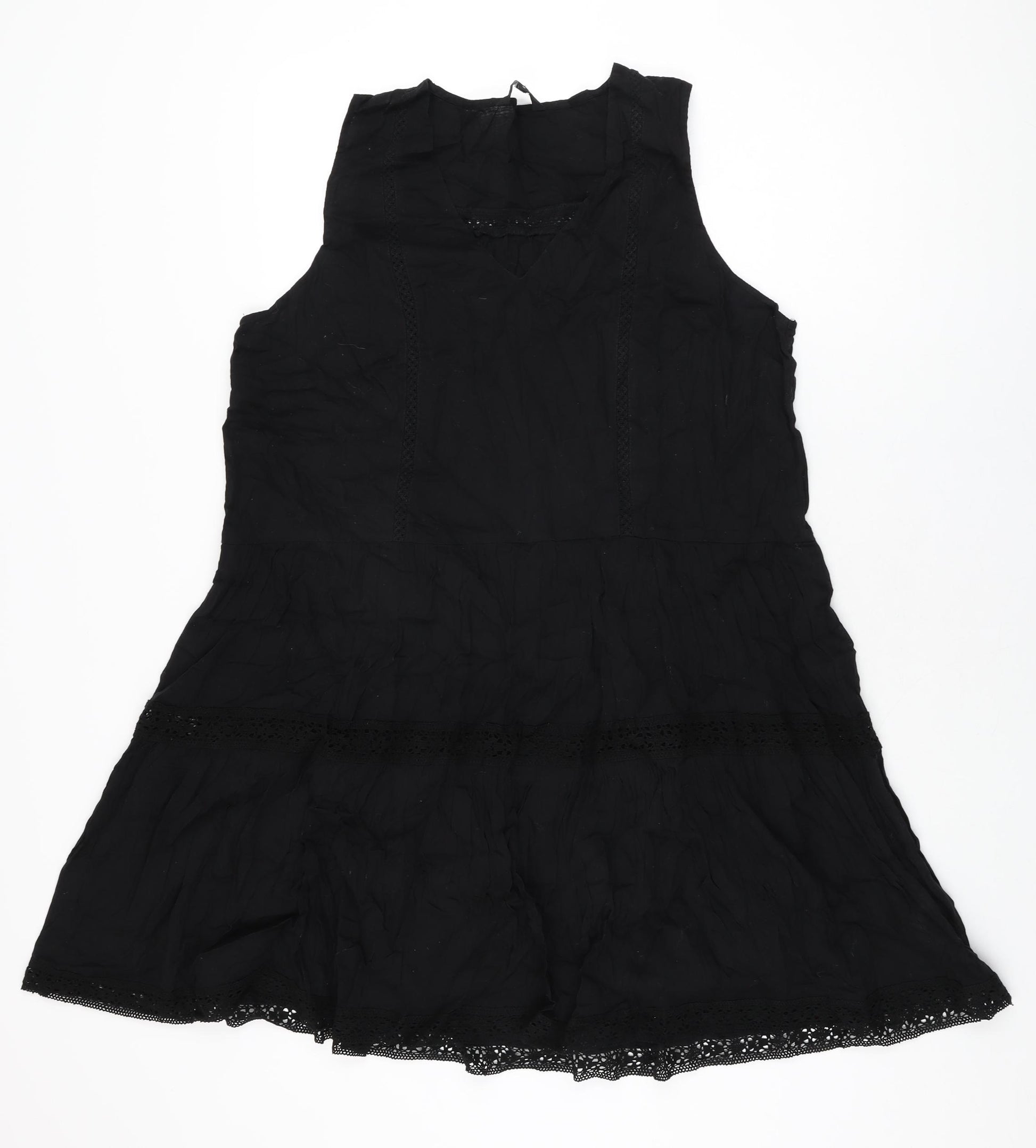Womens Black Cotton Shift Size 18 V-Neck Pullover