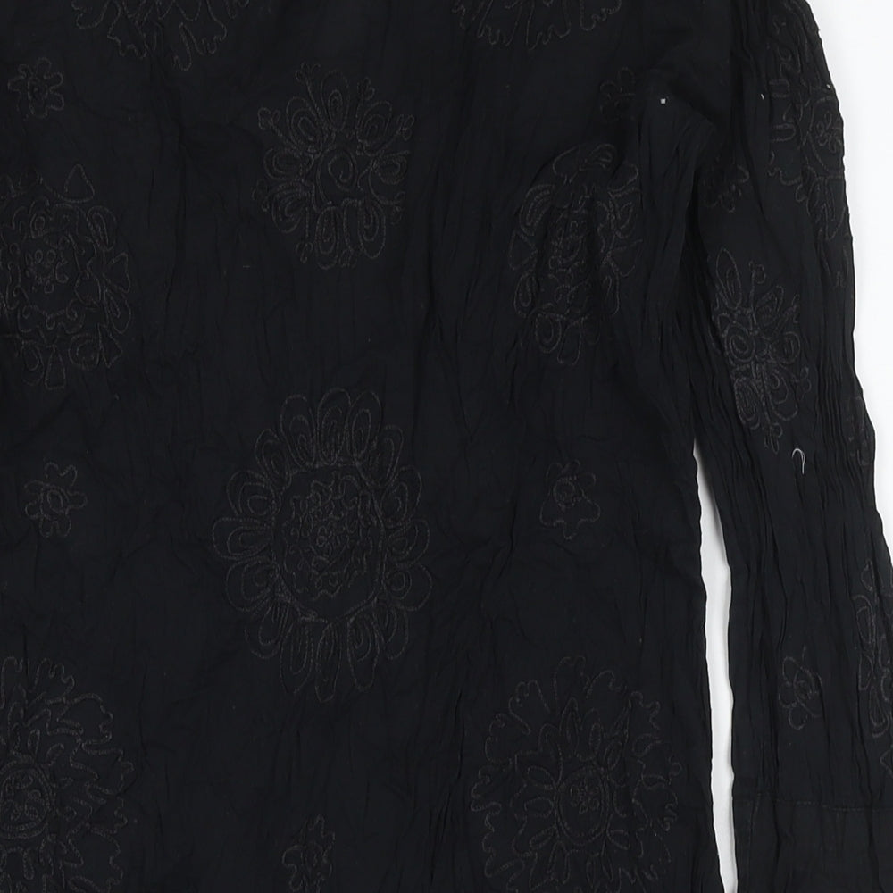 Womens Black Cotton Tunic Blouse Size 10 V-Neck