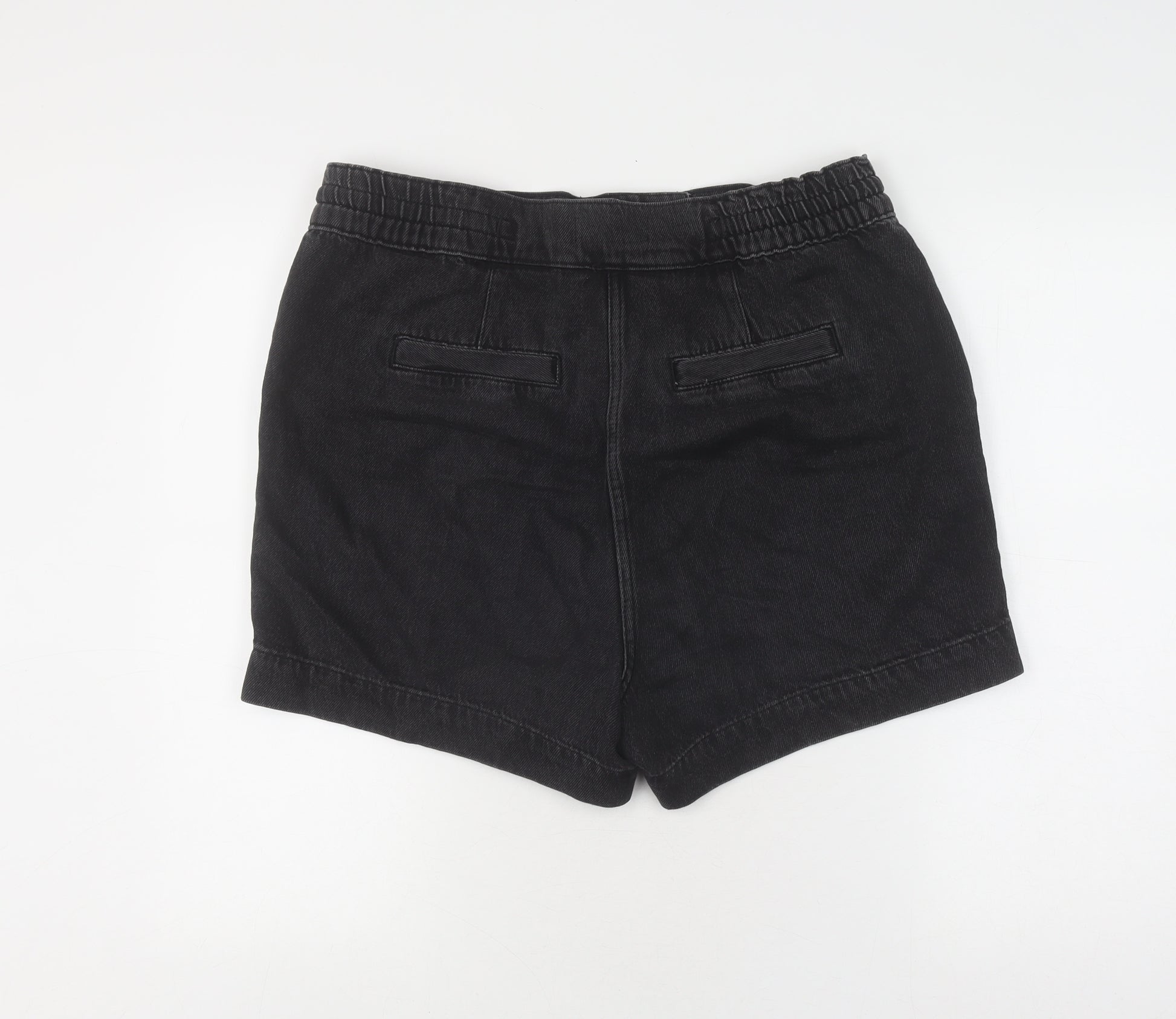 Upgrade your summer wardrobe with these stylish black denim shorts from Next. Designed for women, these shorts offer a blend of comfort and fashion, perfect for casual outings or spontaneous adventures. Made from a durable and comfortable cotton-viscose blend, they provide a soft touch and resilience for everyday wear. Featuring an elastic waistband with a convenient zip closure, these shorts ensure a comfortable fit around the waist. The mid-rise design offers a flattering silhouette, and the dark wash brings a sophisticated look to the overall design. These shorts come with functional slash pockets, making them practical for carrying essentials. Suitable for various activities and occasions, from spring through autumn, they are versatile and go well with any top in your collection. These shorts show a small stain on the front, reflected in the pricing, making them an excellent value buy. Whether you're strolling through the city or lounging at the beach, these shorts promise style and convenience, making them a must-have item for any fashion-forward individual.