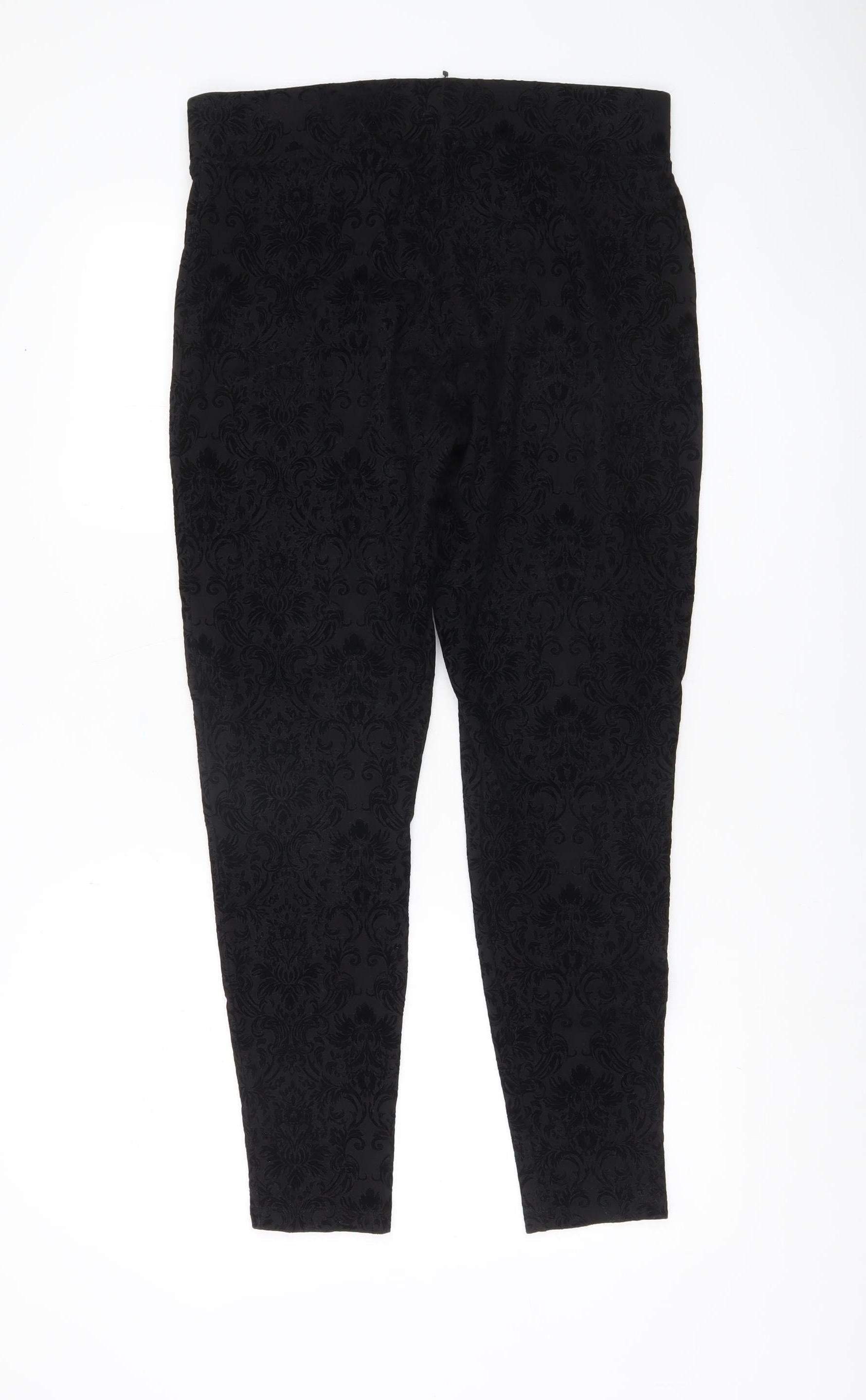 Next Womens Black Floral Leggings Size 12 Stretch Woven Casual