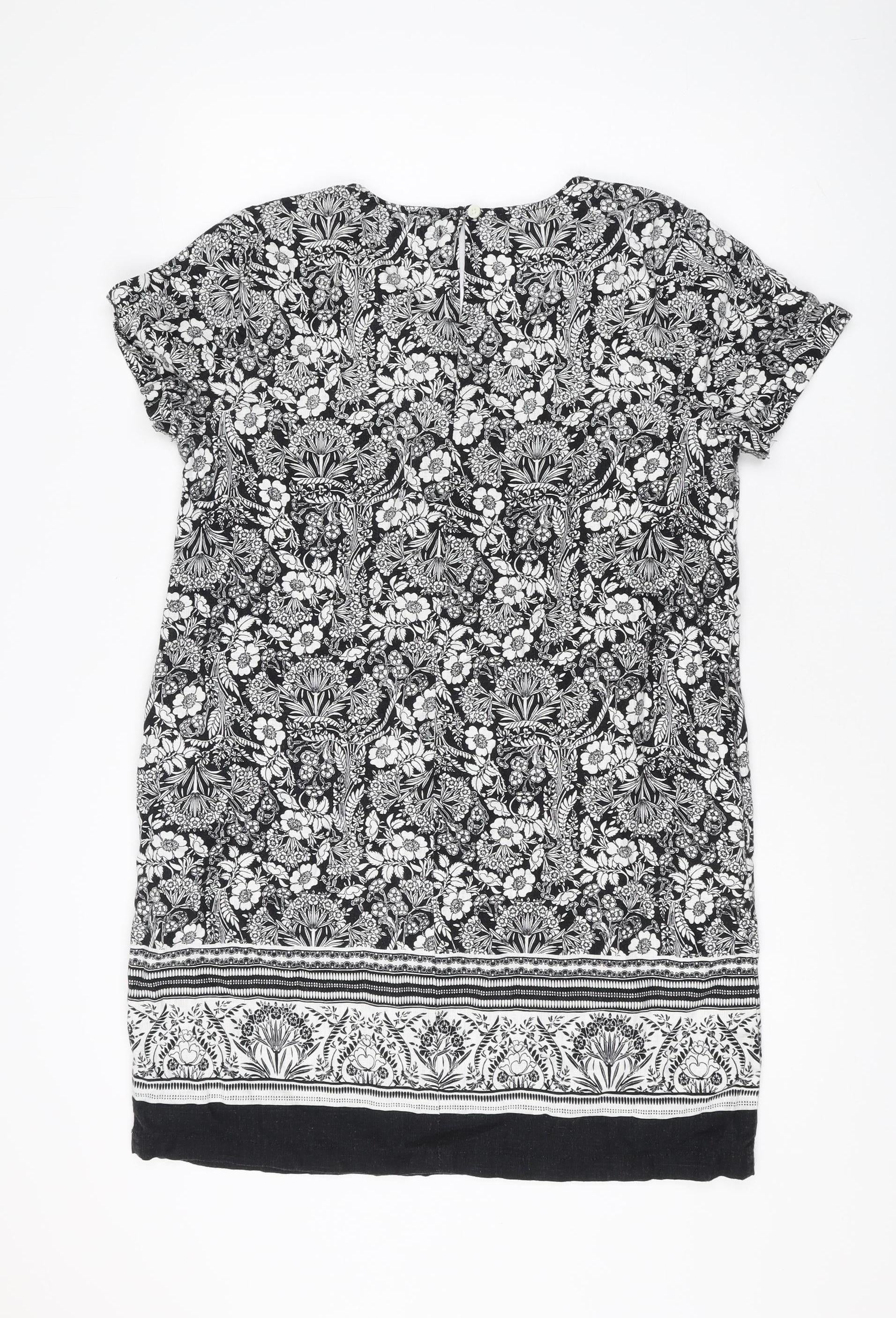 Next Women's Black Floral Petite Shift Dress Size 14P