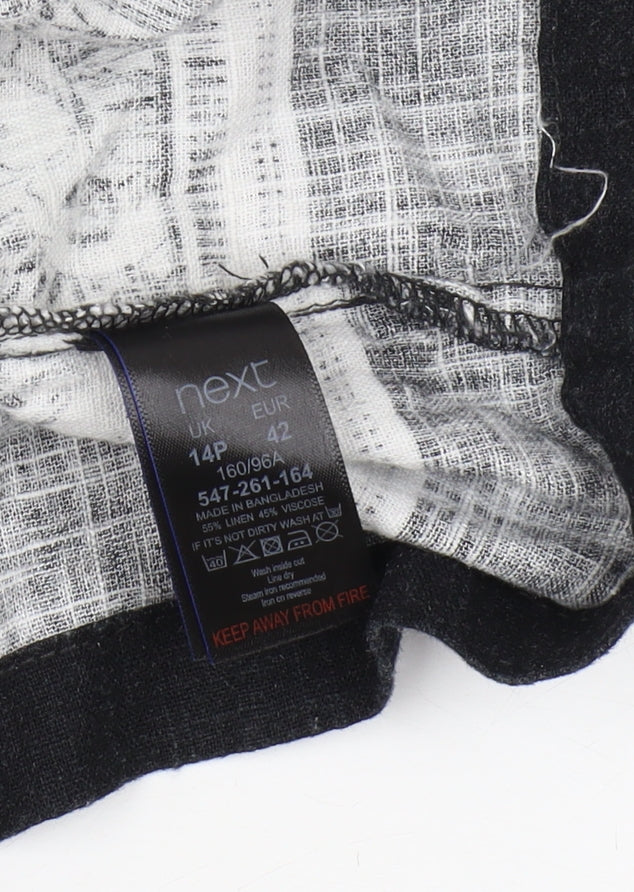 Embrace timeless elegance with this black floral shift dress from Next, designed exclusively for petite women. Made from a luxurious blend of 55% linen and 45% viscose, this lightweight dress ensures both comfort and style, making it the perfect choice for spring and summer outings. The dress features short sleeves and a flattering V-neckline, embodying casual sophistication. The woven fabric, adorned with a striking floral pattern, adds a touch of femininity, while the zip closure ensures ease of wear. This versatile piece is perfect for casual occasions, whether you're heading to a brunch with friends or a weekend getaway. The petite size and shift style provide a flattering fit without compromising on comfort. Although pre-loved, the dress is in excellent condition, exhibiting no visible marks or signs of wear. Ideal for adding a chic touch to your wardrobe, this dress is machine washable, ensuring effortless care. Make a statement with this elegant floral piece that combines classic design with modern appeal.