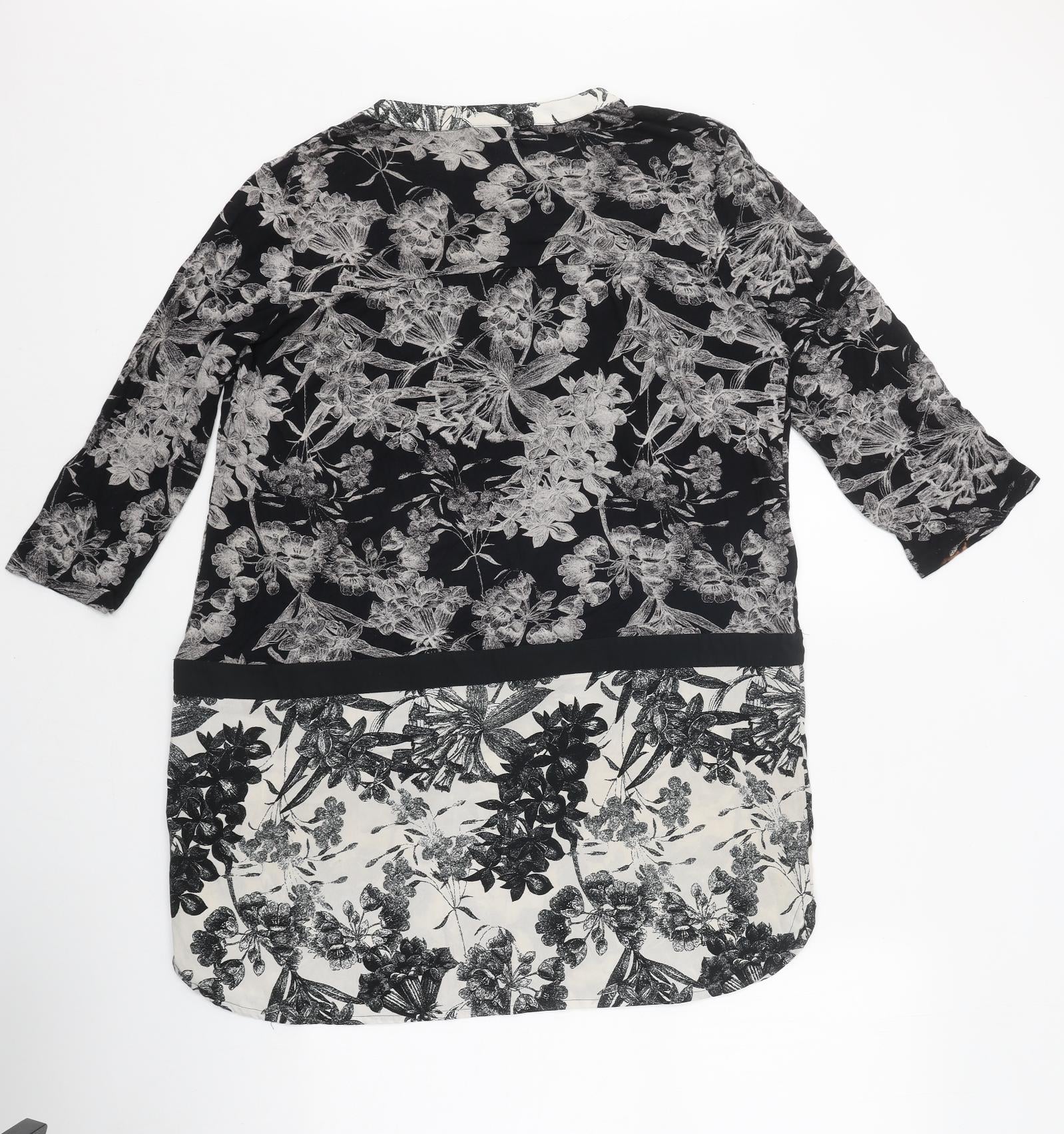 Womens Black Floral Polyester Basic Blouse Size 16 V-Neck