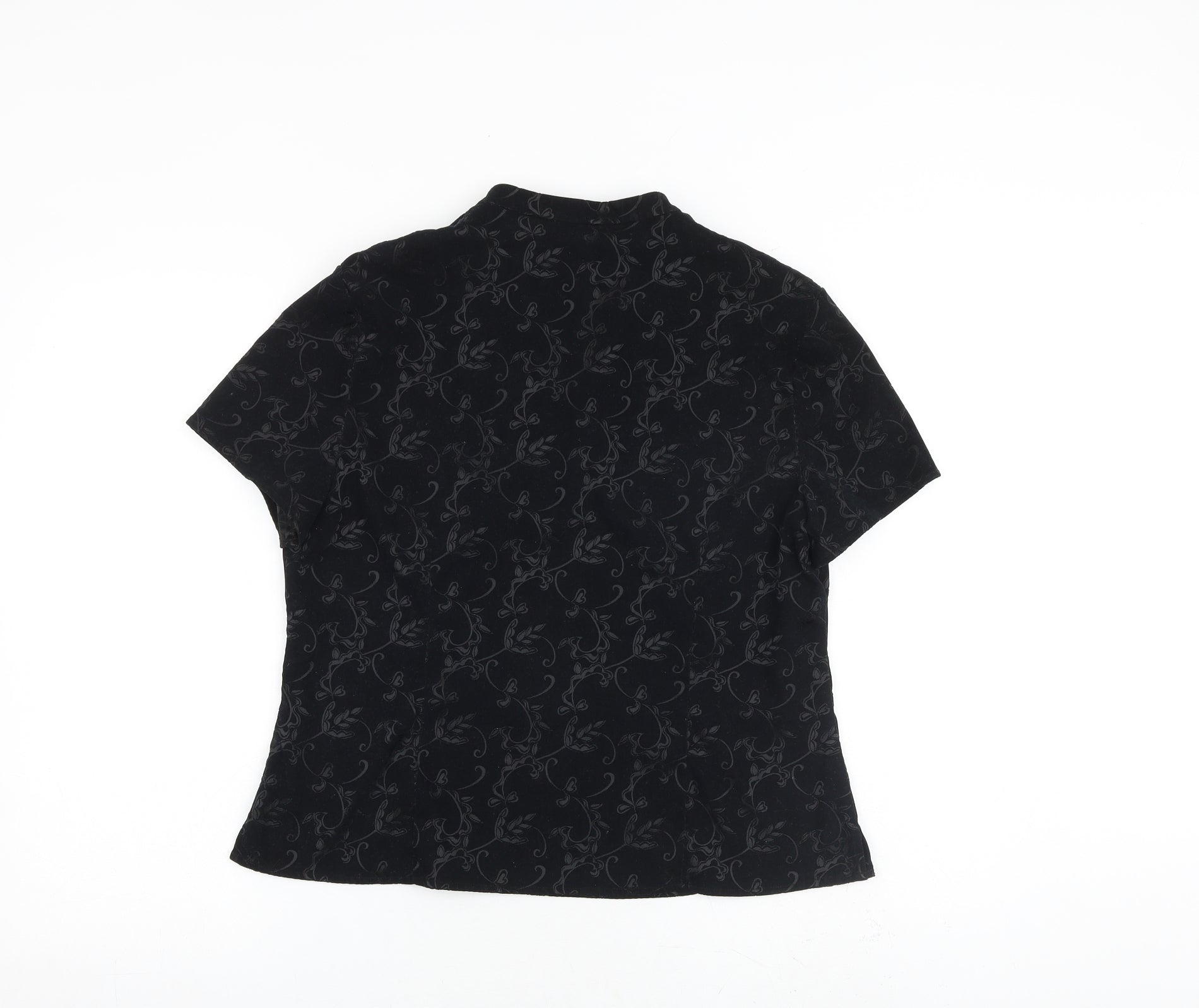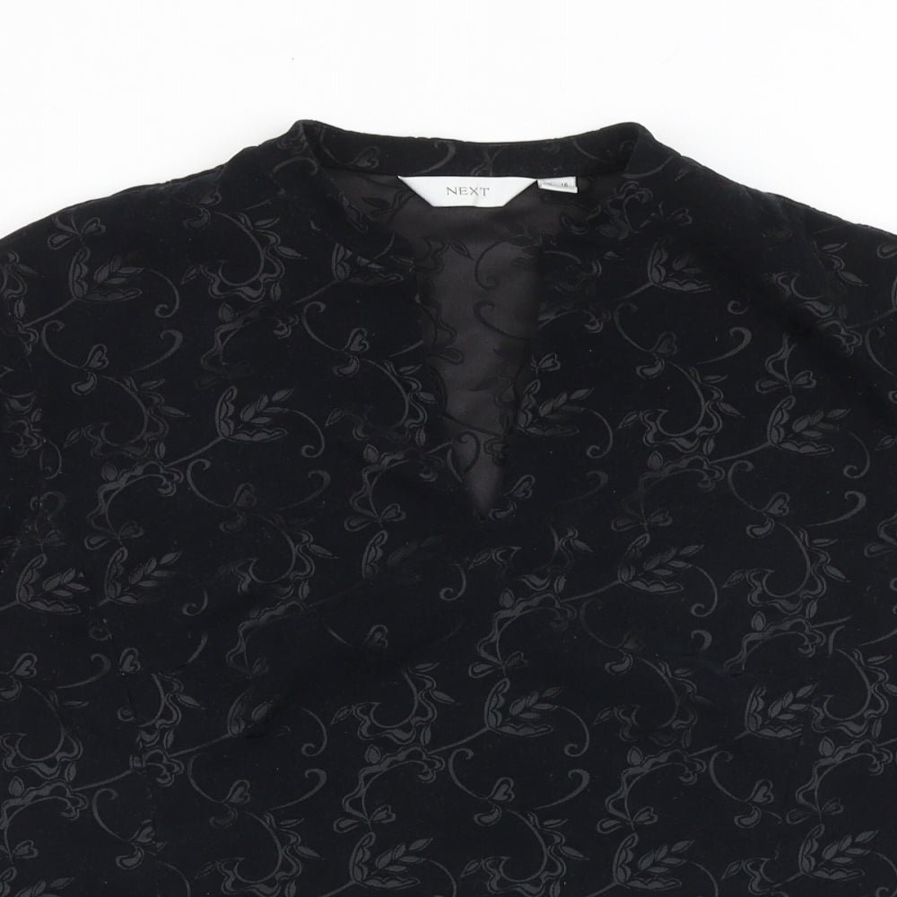 Womens Black Floral Polyester Basic T-Shirt Size 16 V-Neck