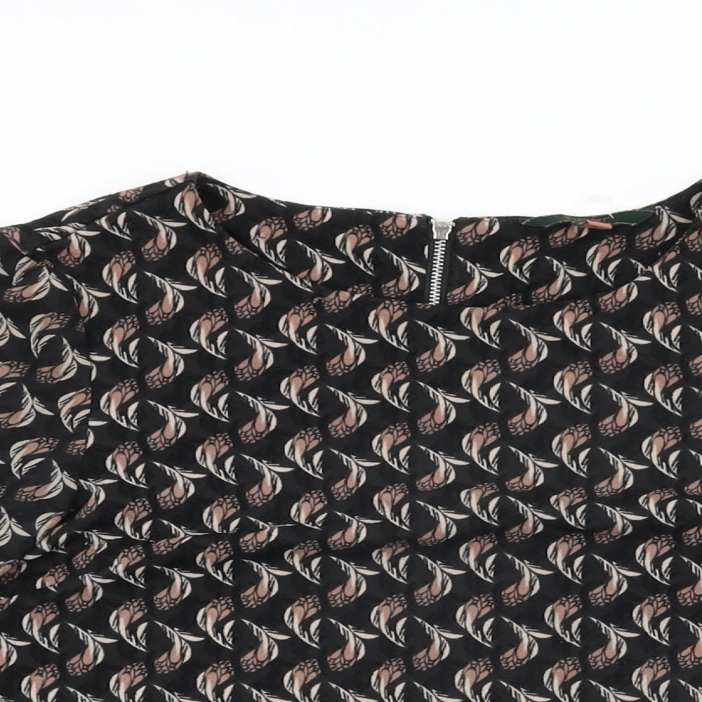 Womens Black Geometric Polyester Basic T-Shirt Size 6 Round Neck
