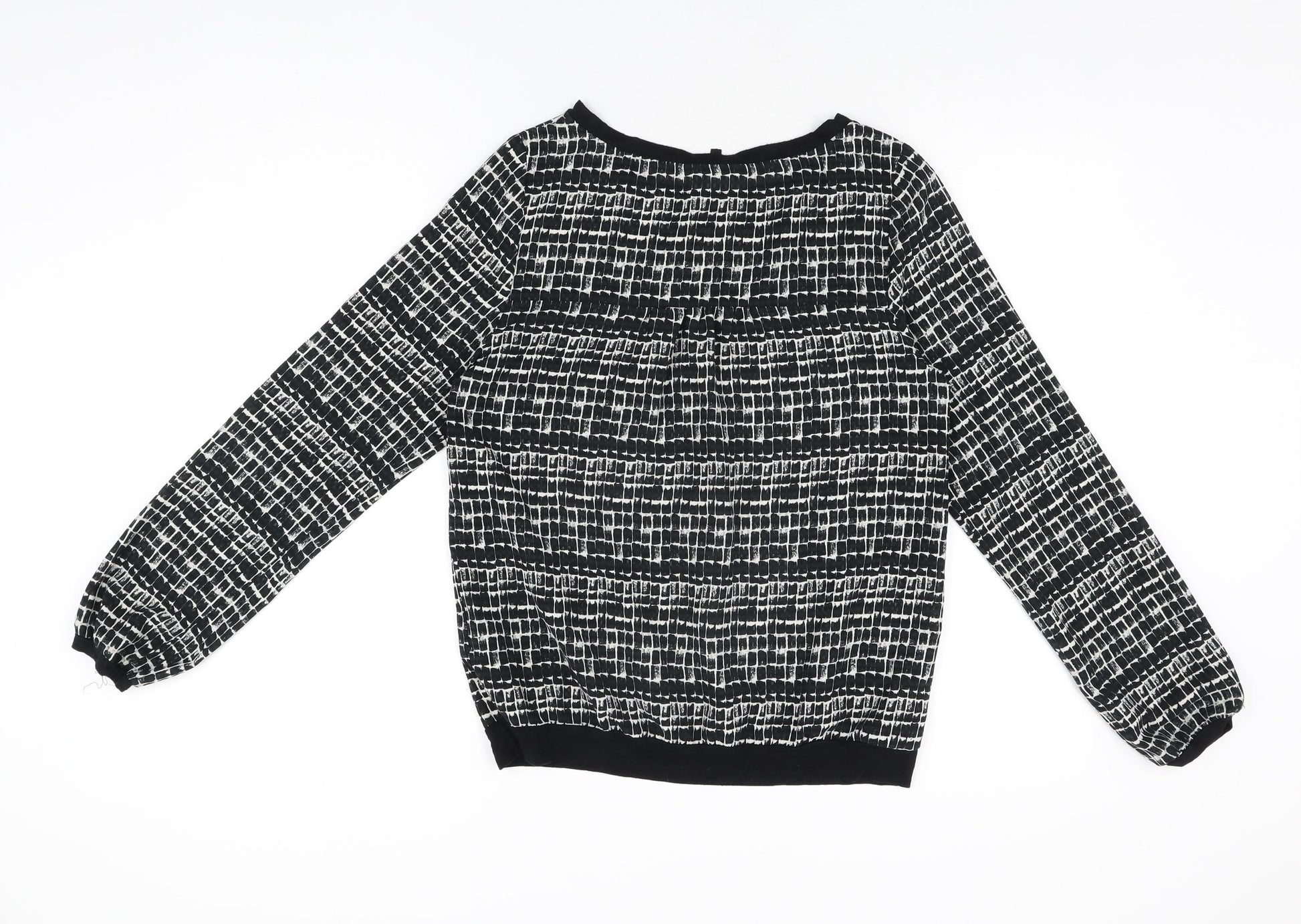 Womens Black Geometric Polyester Basic T-Shirt Size 8 Round Neck