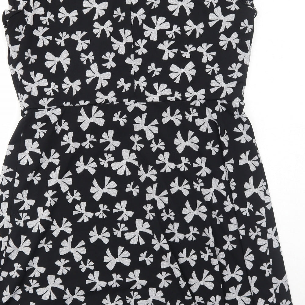 Womens Black Geometric Polyester Shift Size 16 Round Neck Pullover - Bow Pattern