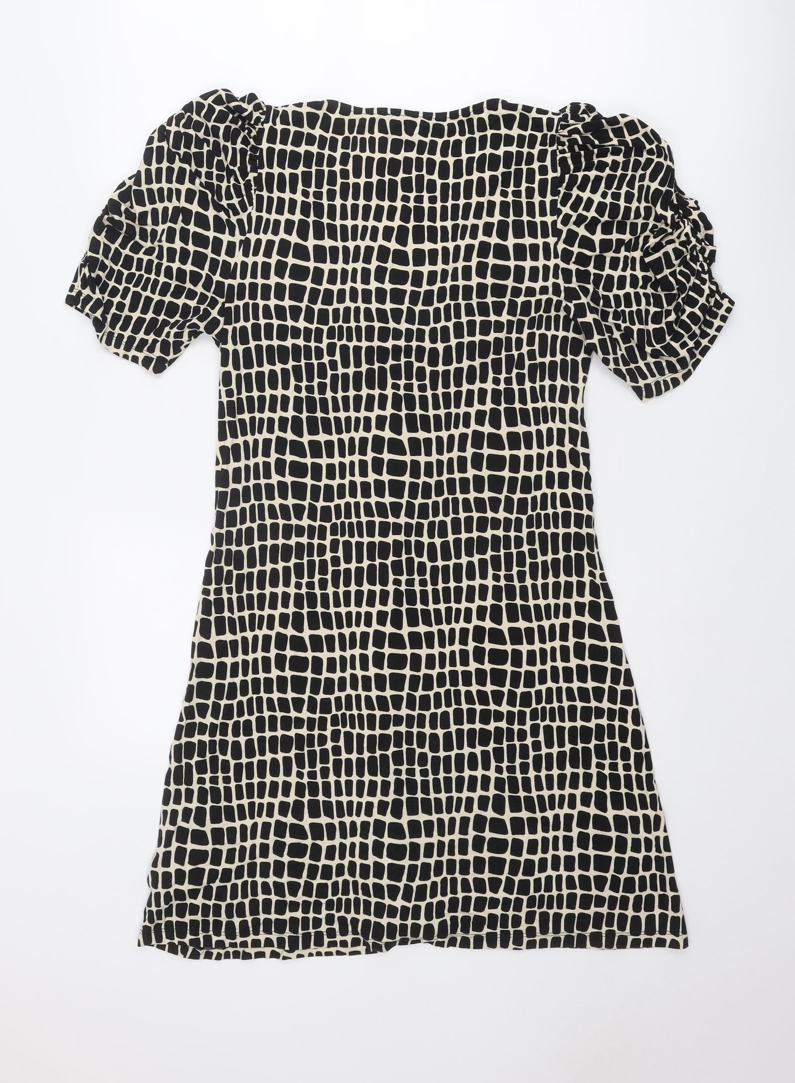 NEXT Womens Black Geometric Polyester A-Line Size 12 Round Neck Button
