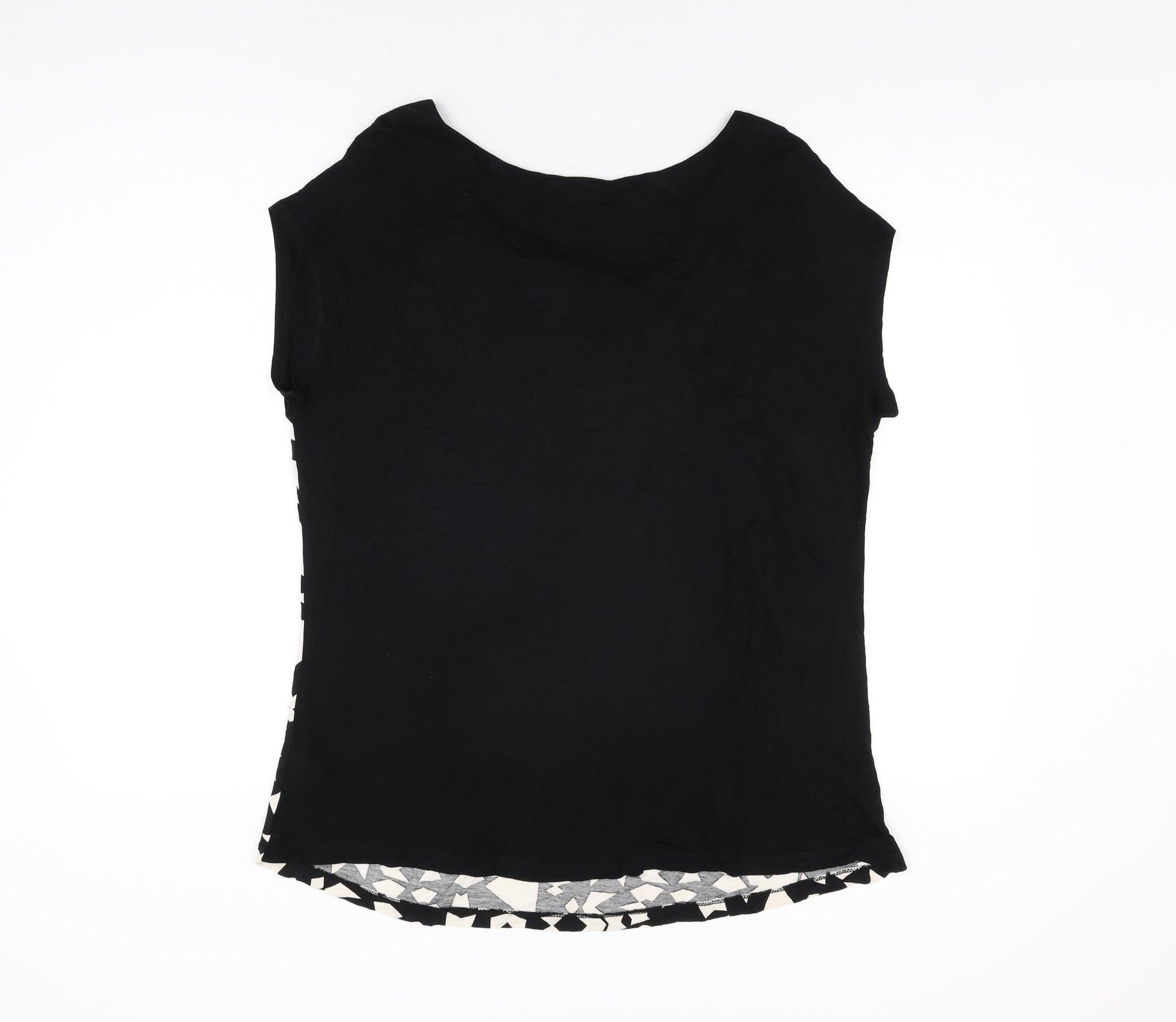 Womens Black Geometric Viscose Basic T-Shirt Size 20 Round Neck