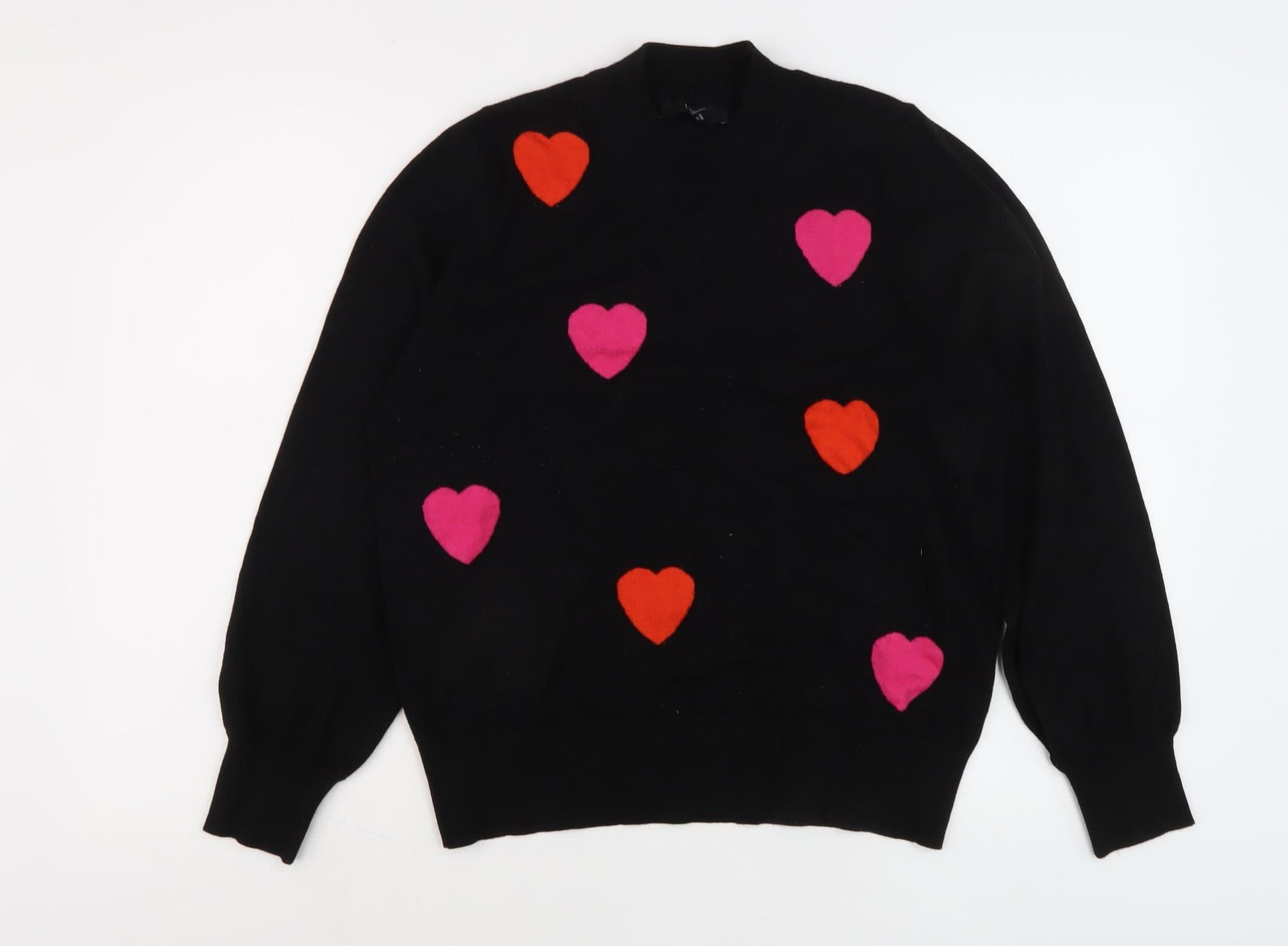 Elevate your casual wardrobe with this charming black pullover jumper by Next, designed to bring both warmth and style to your autumn and winter ensembles. Featuring an adorable heart motif in red and pink, this jumper effortlessly combines playful flair with everyday sophistication. The soft, 100% cotton fabric ensures a comfortable fit, while the tight-knit construction and mock neck add a touch of trendy elegance. Perfect for women seeking both comfort and style in their casual outings or relaxed days at home.With a long sleeve cut, this regular fit jumper is ideal for layering over shirts or pairing with your favourite jeans, offering versatility in styling options. Its lightweight nature makes it an excellent choice for transitioning between seasons, allowing breathability and comfort during those chilly months. The mock neck adds an extra element of warmth without compromising on style, while the knit fabric ensures a snug and cozy feel.Machine washable for easy care and maintenance, this Next jumper is designed for convenience and longevity, promising to be a staple piece in your wardrobe for years to come. Despite minimal wear, as evidenced by its excellent condition, this piece is perfect for those looking for quality and style at a great price. Whether you're dressing for a casual outing or relaxing at home, this black heart pullover jumper is sure to be a favourite go-to in your collection.