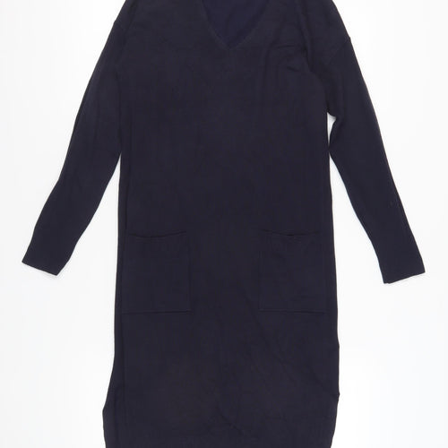 Next Women's Black Jumper Dress, Size 8, V-Neck, Knit, Pockets