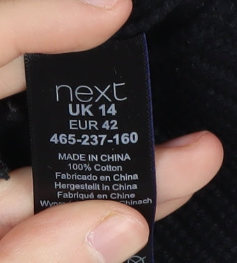 Stay warm and stylish in this classic black knit hooded jacket from Next. Perfect for the cool autumn and winter months, this regular-fitted jacket offers a sleek, minimalist design that complements any casual attire. The 100% cotton fabric ensures a comfortable fit, while the full zip closure and hood provide extra warmth and protection against the elements. Ideal for women on the go, this jacket features long sleeves and a basic yet chic design that never goes out of style. The practical zip accents add a touch of modernity, making it an excellent addition to your wardrobe whether you're running errands or enjoying a casual outing. Versatile and easy to maintain with its machine washable fabric, this piece is designed for everyday wear. As a part of Next's quality collection, this jacket offers durability and timeless appeal. With no visible damage, it remains in excellent condition, promising to serve as a reliable and fashionable outerwear choice. Secure this jacket today and experience the perfect blend of comfort and style.