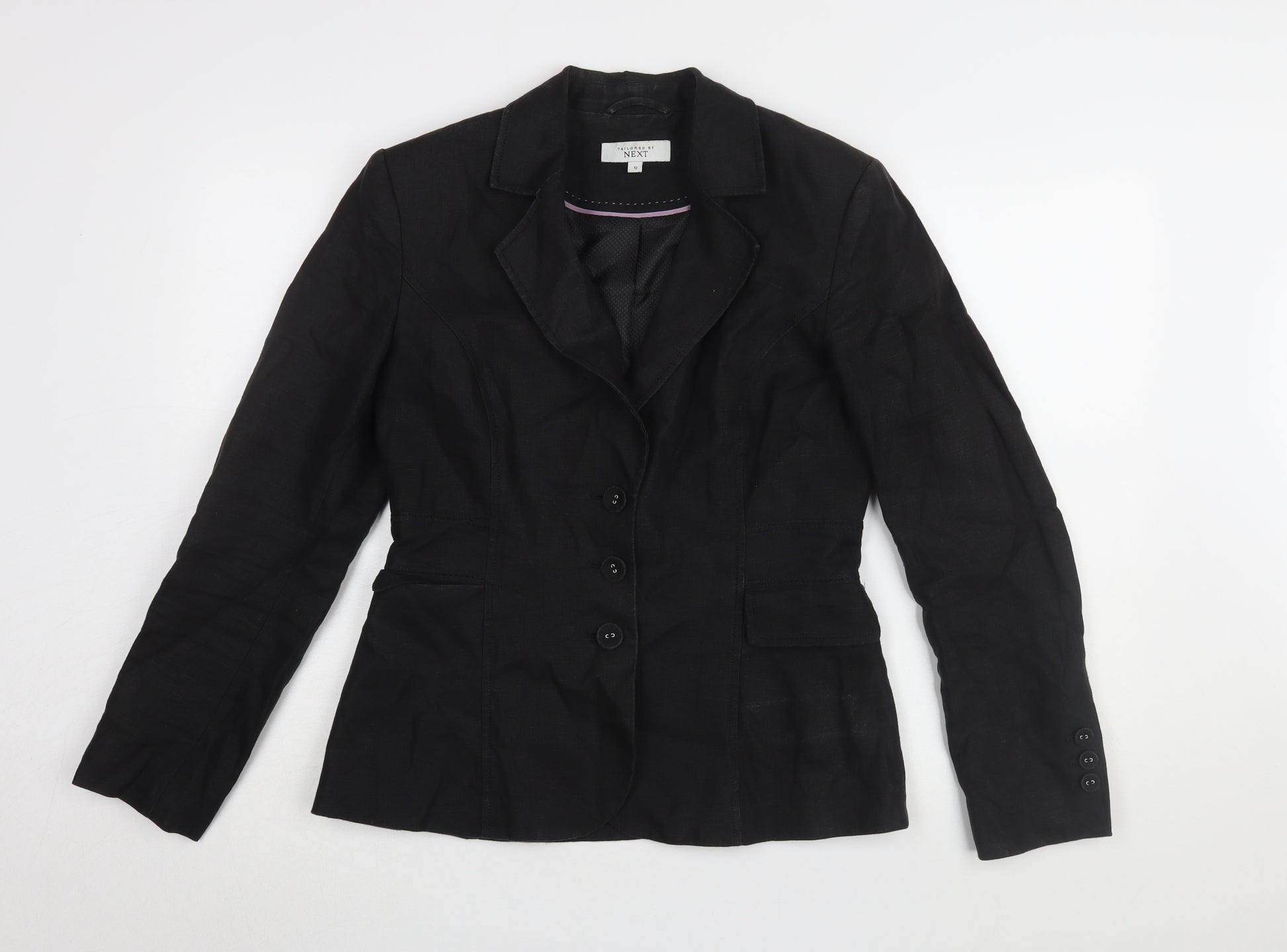 Next Women's Black Linen Blazer, Size 12, Buttoned, Lined
