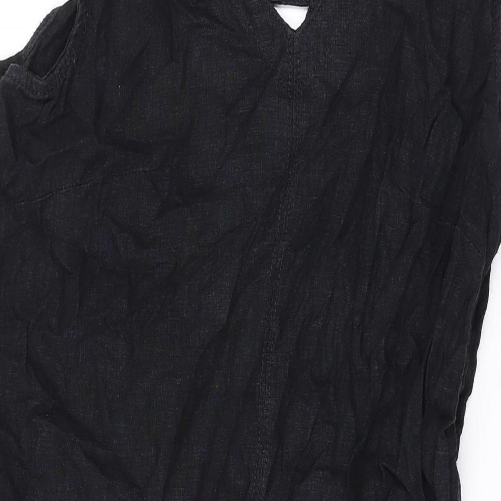 Womens Black Linen Tank Dress Size 10 V-Neck Pullover