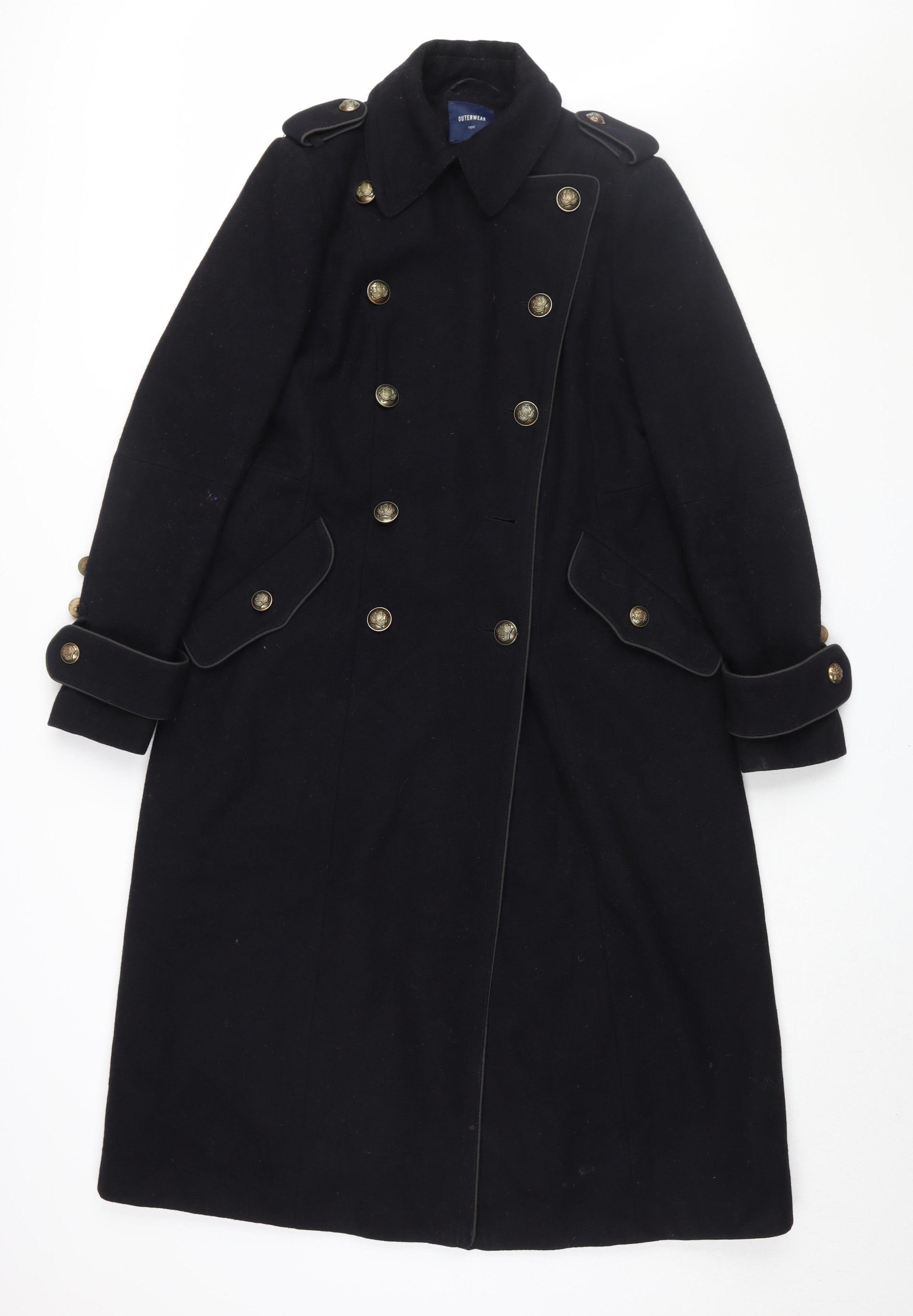 Embrace classic military-inspired style with this elegant black coat from Next. This women's coat, meticulously crafted with a rich blend of wool, polyester, acrylic, and nylon, ensures warmth and comfort while maintaining a sophisticated silhouette. Its long length and double-breasted design add an element of timeless fashion, perfect for the cooler months of autumn and winter. The coat is regular fit, making it an ideal addition to your wardrobe for both workwear and casual occasions. Adorned with striking button accents that complete its refined look, this coat comes in size 14, ensuring a fabulous fit for those seeking both function and style. It features a fully polyester-lined interior, adding a soft touch against the skin and enhancing durability. With the convenience of a button closure and a noteworthy military style, this coat stands out as a versatile choice for fashion-forward individuals. The garment's excellent condition further emphasizes its quality, while a price of just £29.50 positions it as a fantastic value. Perfect for those who appreciate classic pieces that transcend seasons, this Next coat is a must-have staple for any wardrobe.