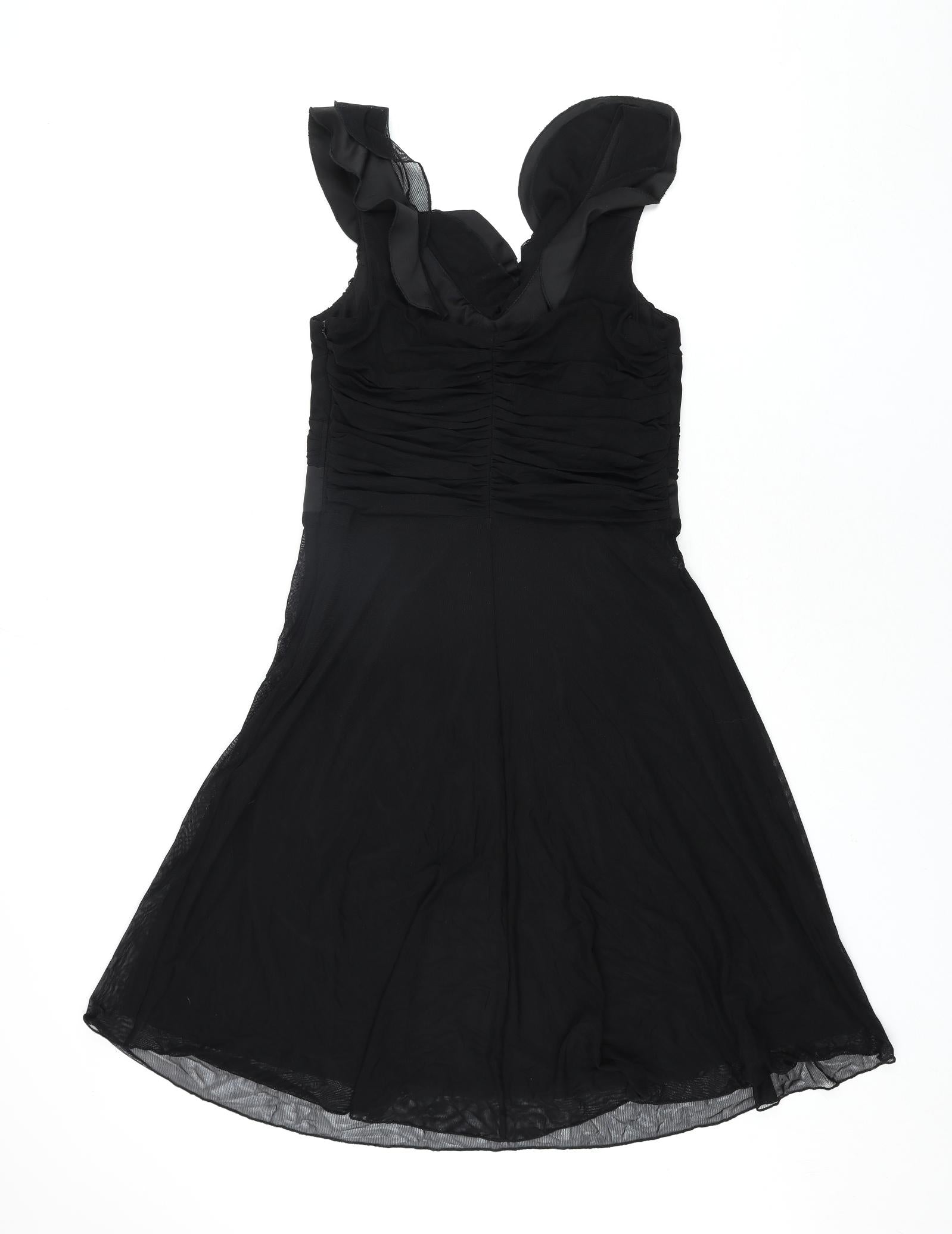 Womens Black Nylon Fit & Flare Size 12 V-Neck Pullover - Frill