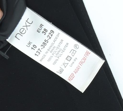 Elevate your professional wardrobe with this sleek black pencil skirt from Next. Perfectly tailored for business and workwear, this knee-length skirt offers a sophisticated and polished look. Made with a durable polyester and elastane blend, it ensures comfort and ease of movement throughout your busy day. The classic straight and pencil style makes it a versatile staple that pairs well with a variety of tops. Featuring a zip closure for a clean, streamlined silhouette, this skirt is ideal for any business setting. Available in size 10, its timeless design transcends seasons, making it a worthy investment for your wardrobe.