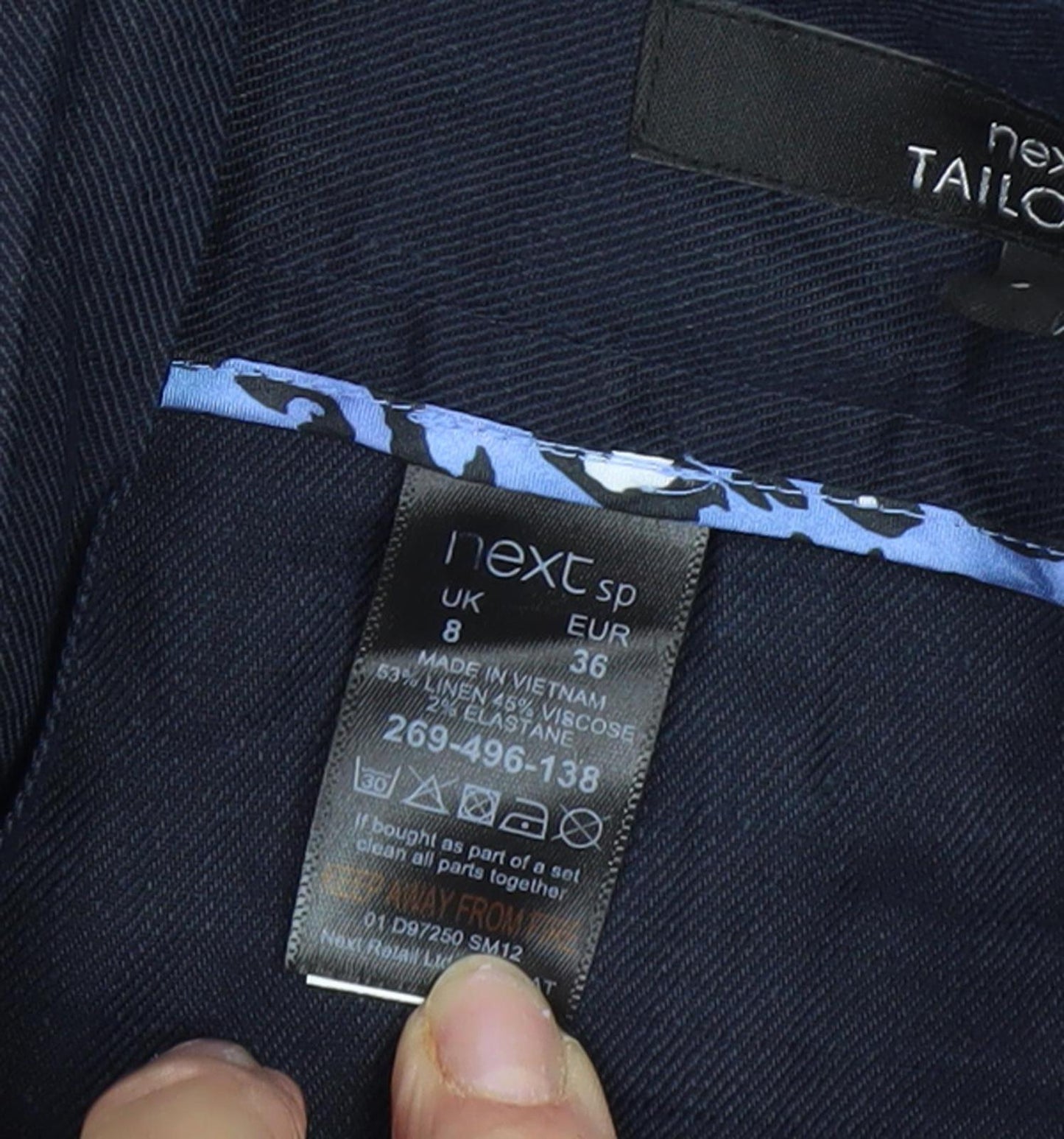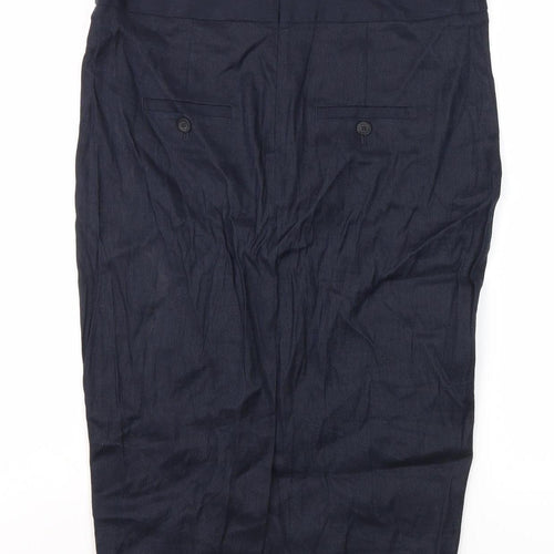 Discover timeless elegance with this sophisticated black pencil skirt from Next, designed to elevate your professional wardrobe. Crafted for the modern woman, this sleek skirt combines style and comfort, making it an essential piece for business attire. The luxurious blend of materials comprising 53% linen, 45% viscose, and 2% elastane ensures a soft touch and breathable fit, perfect for all-day wear. The straight pencil style creates a flattering silhouette that enhances confidence, while the convenient zip closure provides ease of dressing. Thoughtfully accented with buttons, the skirt adds a subtle yet chic detail, ideal for those who appreciate understated elegance.Designed for versatility, this skirt can effortlessly transition from office meetings to evening gatherings, making it a practical addition to any wardrobe. Its classic black colour complements a variety of tops and accessories, allowing you to create numerous polished looks. Whether paired with a simple blouse or a detailed top, this skirt fits seamlessly into professional environments.With no visible imperfections aside from slight creasing, this skirt is in excellent condition, embodying both style and quality. Experience the ease of maintenance with its machine washable fabric, ensuring that it stays pristine wear after wear. Perfect for all seasons, this piece adapts to diverse climates and occasions, supporting an active lifestyle without compromising on style.Elevate your business wardrobe with this elegant pencil skirt from Next, promising comfort, classic style, and versatility. Don't miss the opportunity to make this timeless piece yours today.