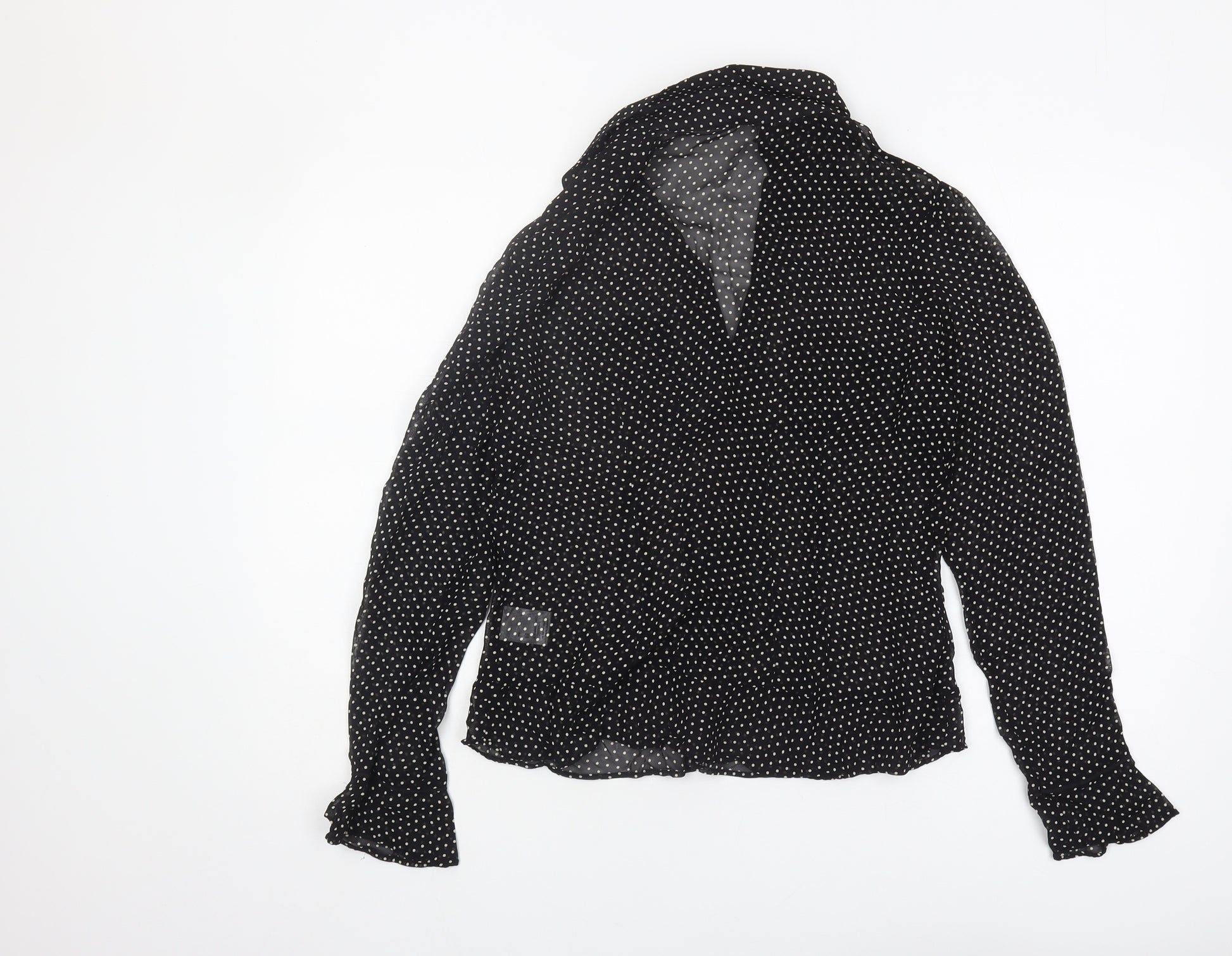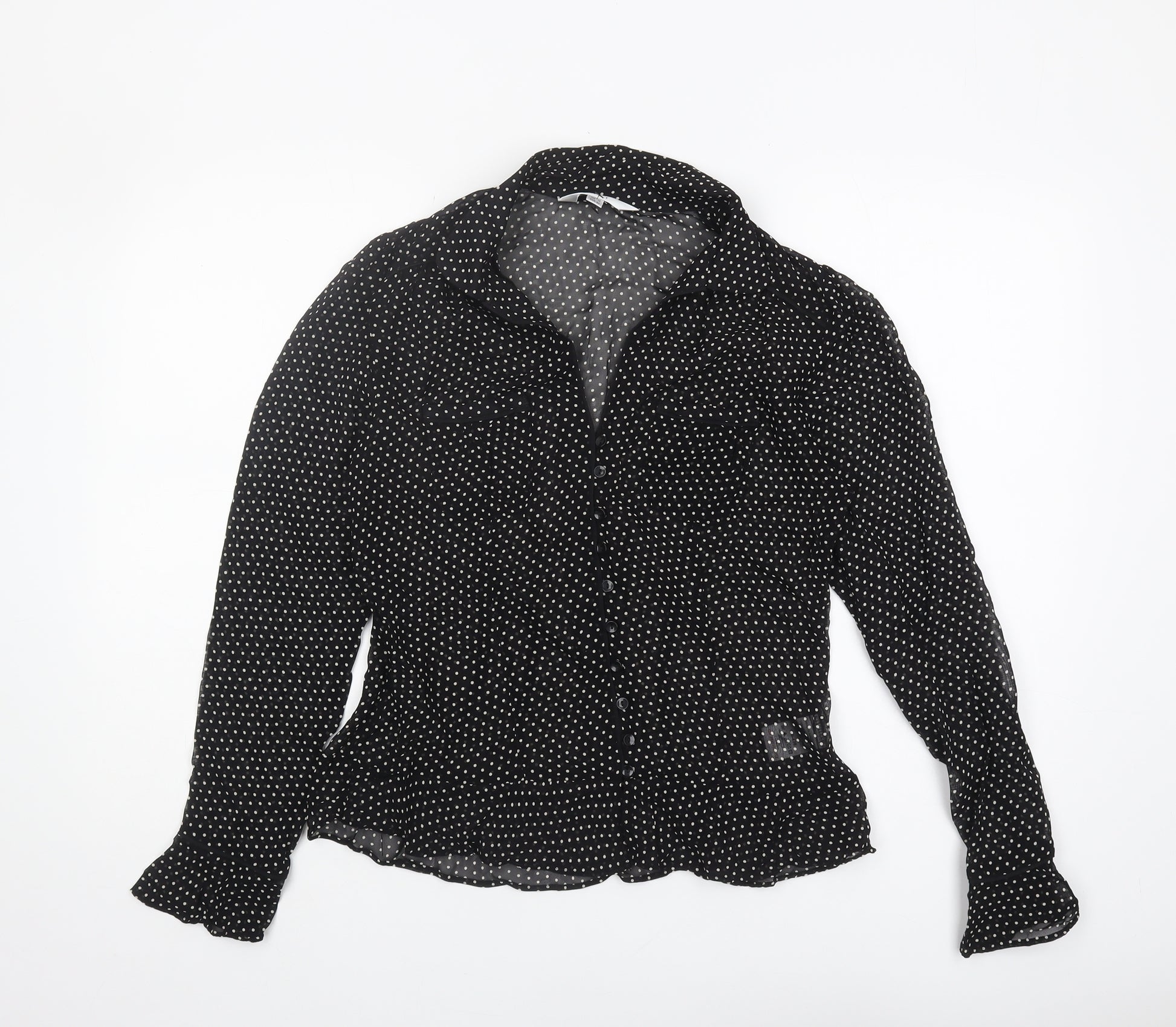 Next Women's Black Polka Dot Collared Blouse, Size 12