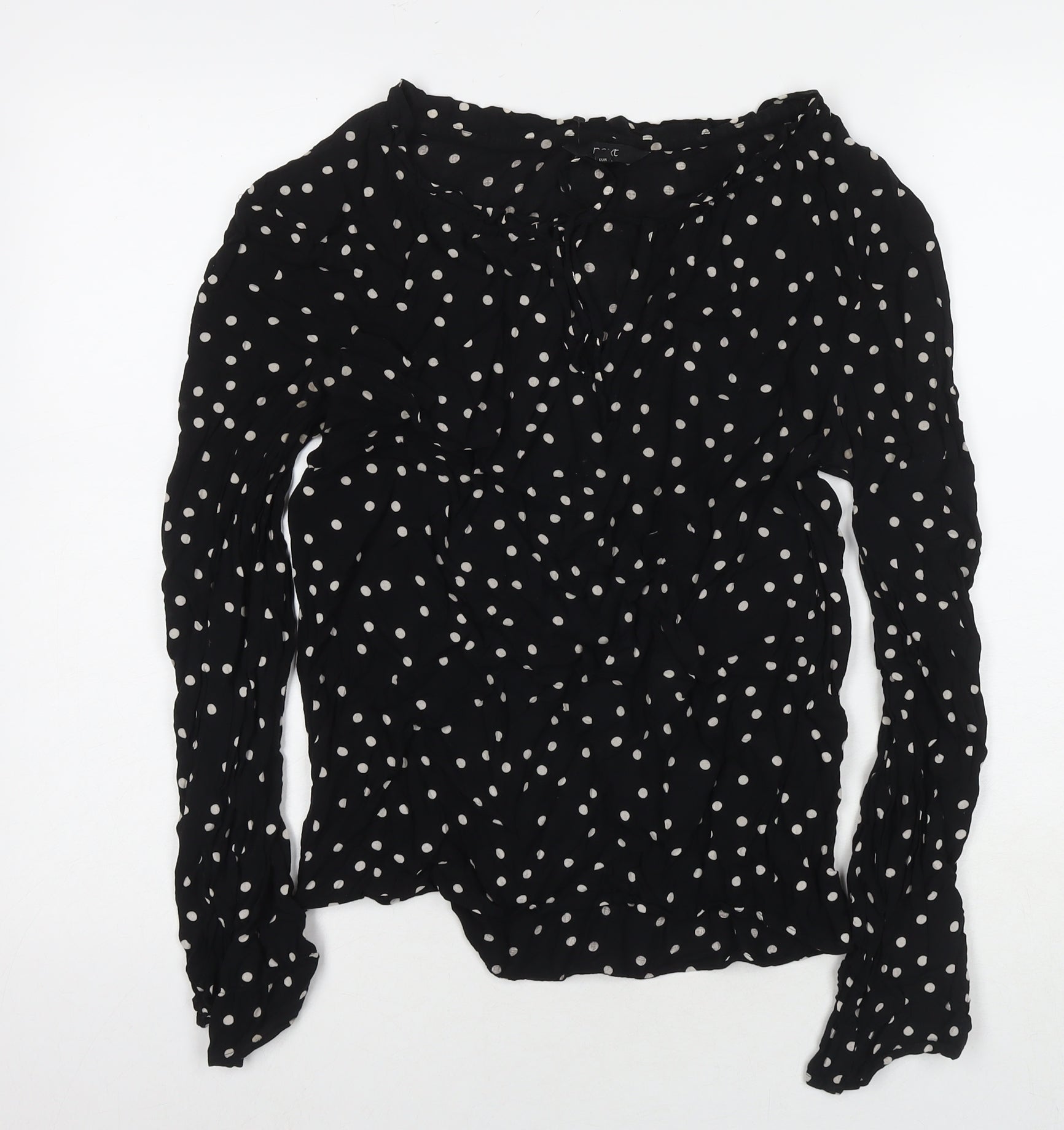 Womens Black Polka Dot Viscose Basic Blouse Size 8 Round Neck