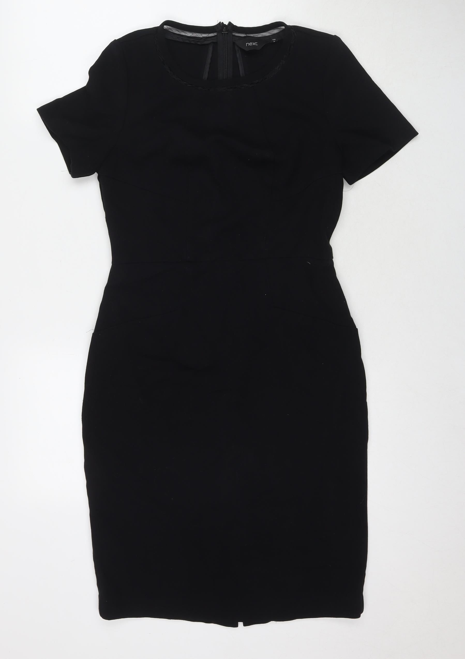 Womens Black Polyester A-Line Size 10 Round Neck Zip