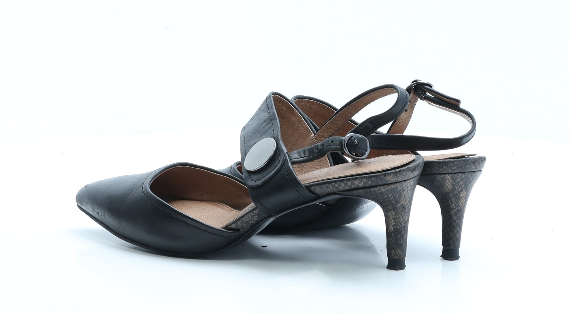 Womens Black Polyester Slingback Heel UK 4 EUR 37