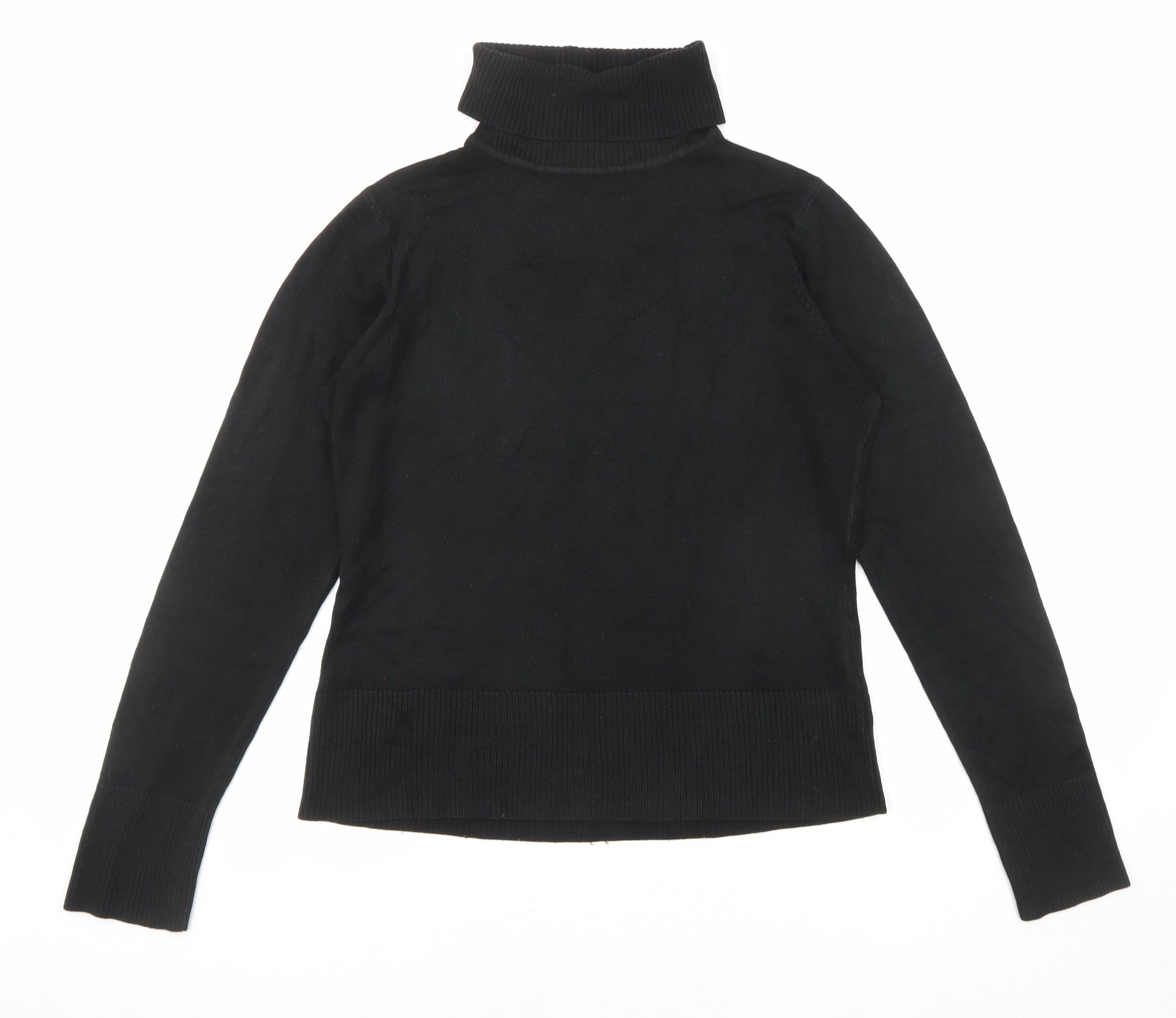 Womens Black Roll Neck Acrylic Pullover Jumper Size 14