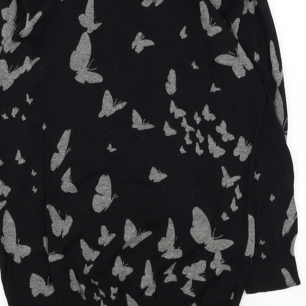 Womens Black Round Neck Polyester Pullover Jumper Size 12 - Butterfly