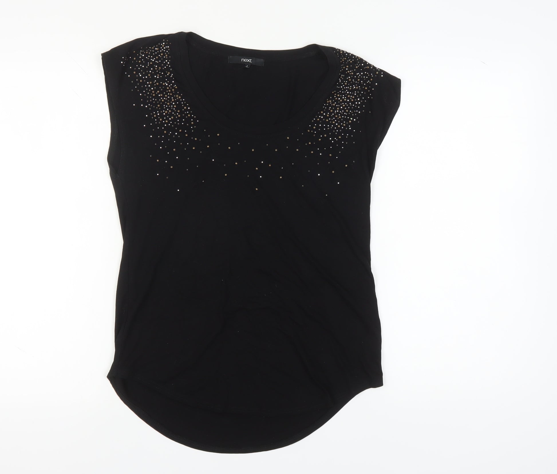 Next Women's Black Scoop Neck Studded T-Shirt Size 8